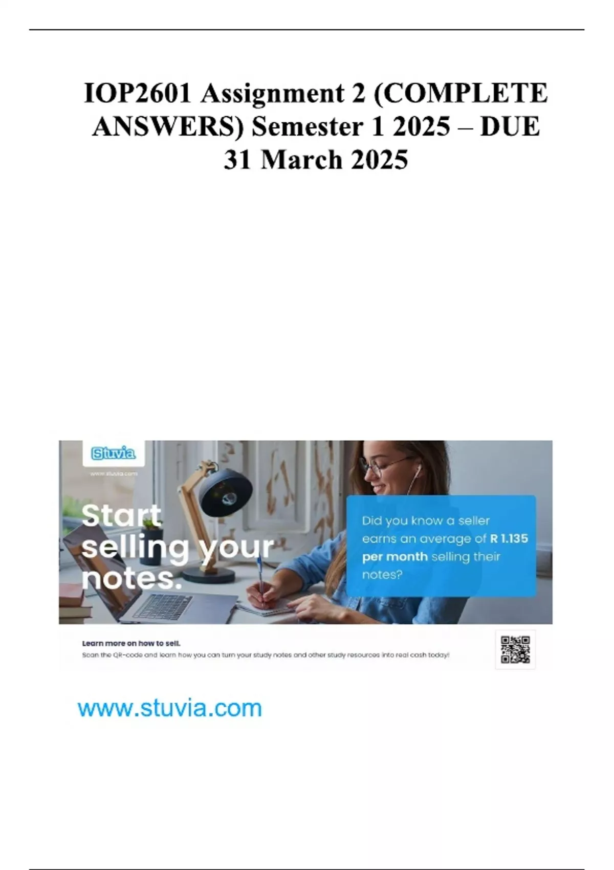 IOP2601 Assignment 2 (COMPLETE ANSWERS) Semester 1 2025 – DUE 31 March 2025