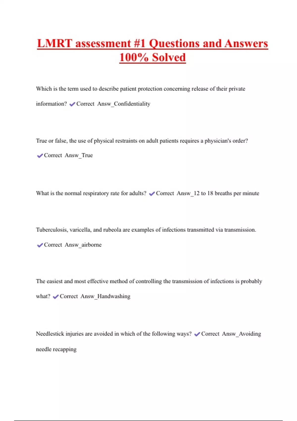 Needlestick injuries are avoided in which of the following ways? Correct Answ_Avoiding