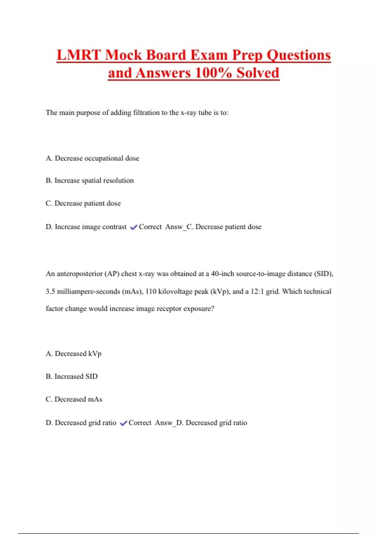 D. Decreased grid ratio Correct Answ_D. Decreased grid ratio