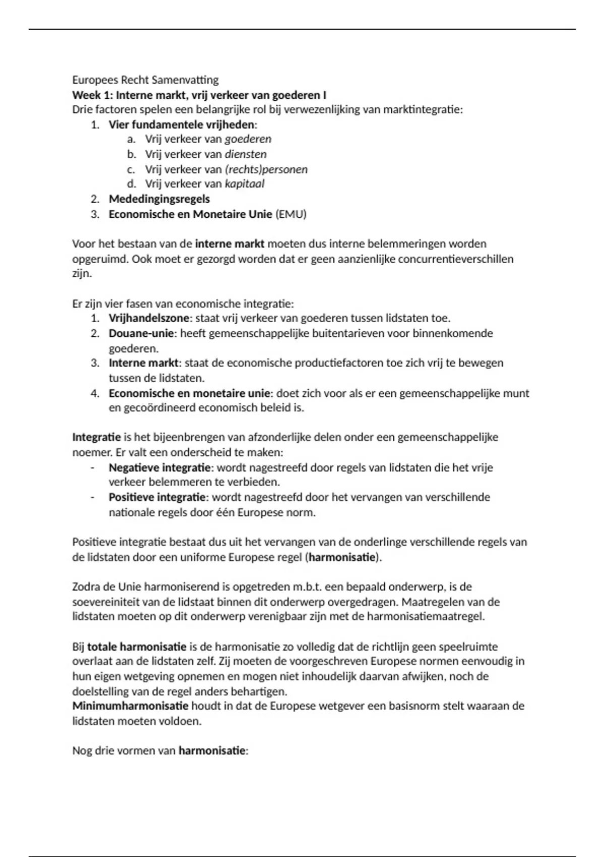 - Negatieve integratie: wordt nagestreefd door regels van lidstaten die het vrije