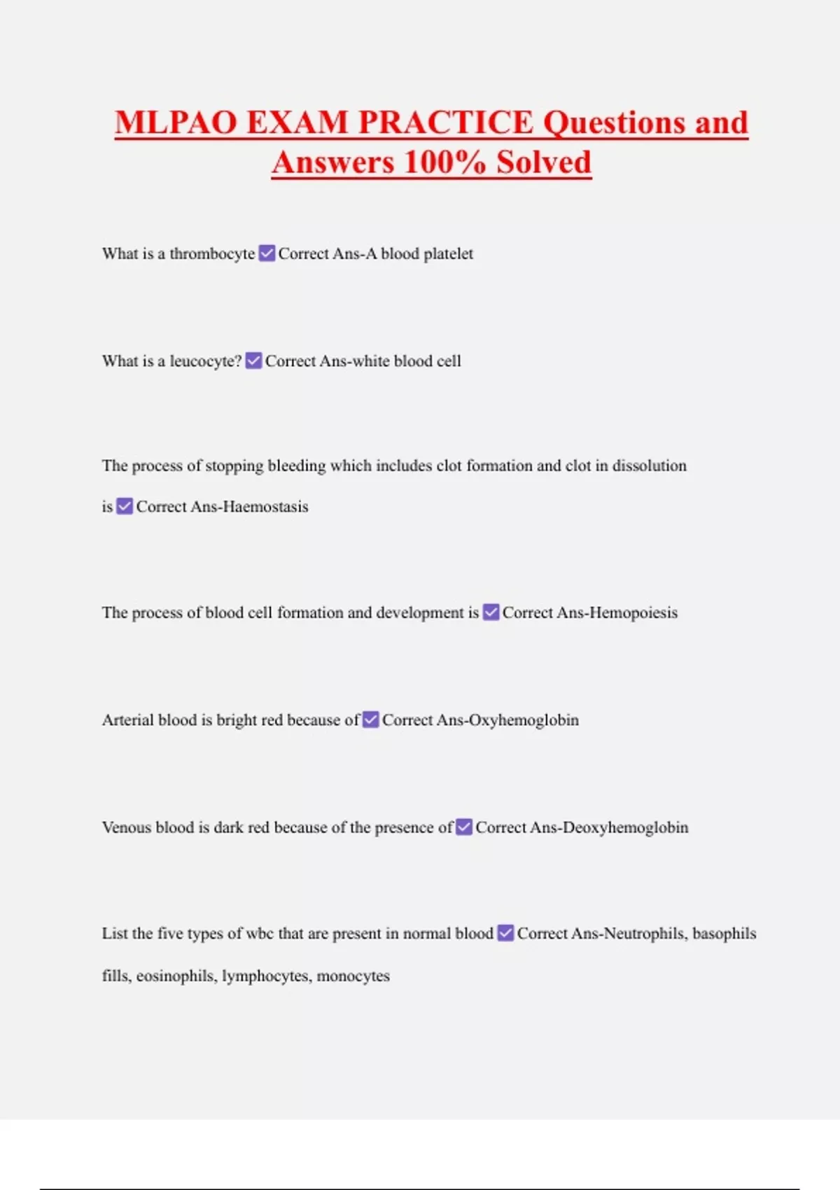 The process of blood cell formation and development is Correct Ans-Hemopoiesis