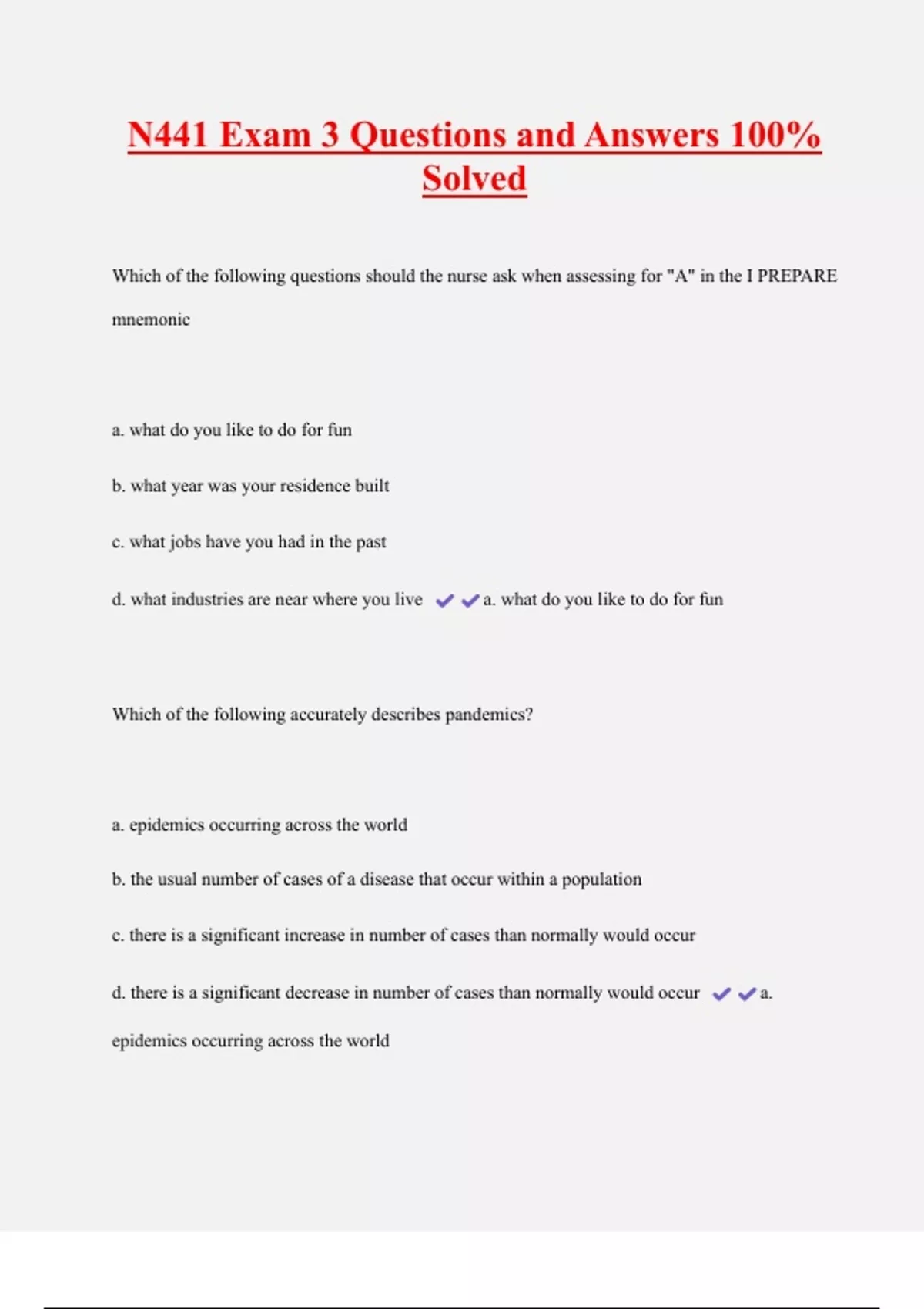 Which of the following questions should the nurse ask when assessing for "A" in the I PREPARE