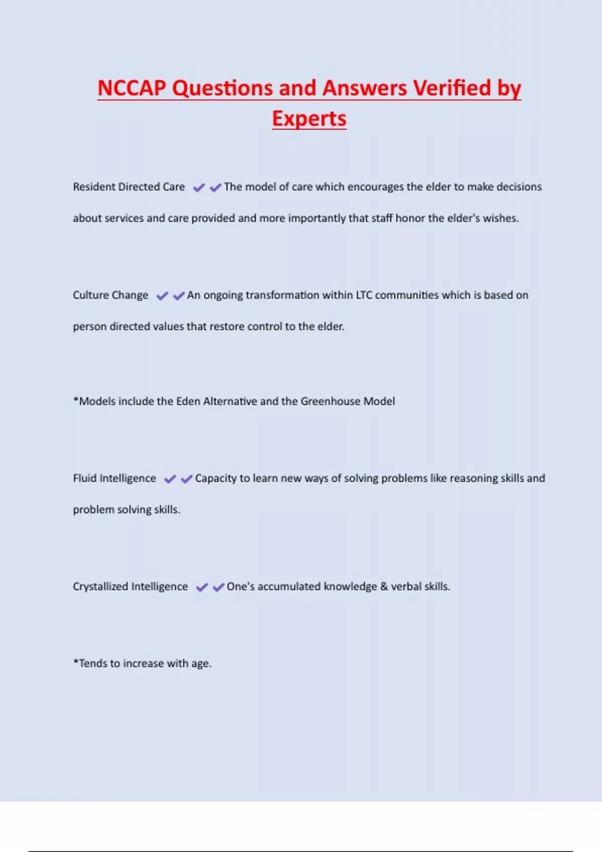 NCCAP Questions and Answers Verified by Experts Resident Directed Care The model of care which encourages the elder to make decisions about services and care provided and more importantly that staff honor the elder's wishes. Culture Change An ongoing transformation within LTC communities which is based on person directed values that restore control to the elder. *Models include the Eden Alternative and the Greenhouse Model