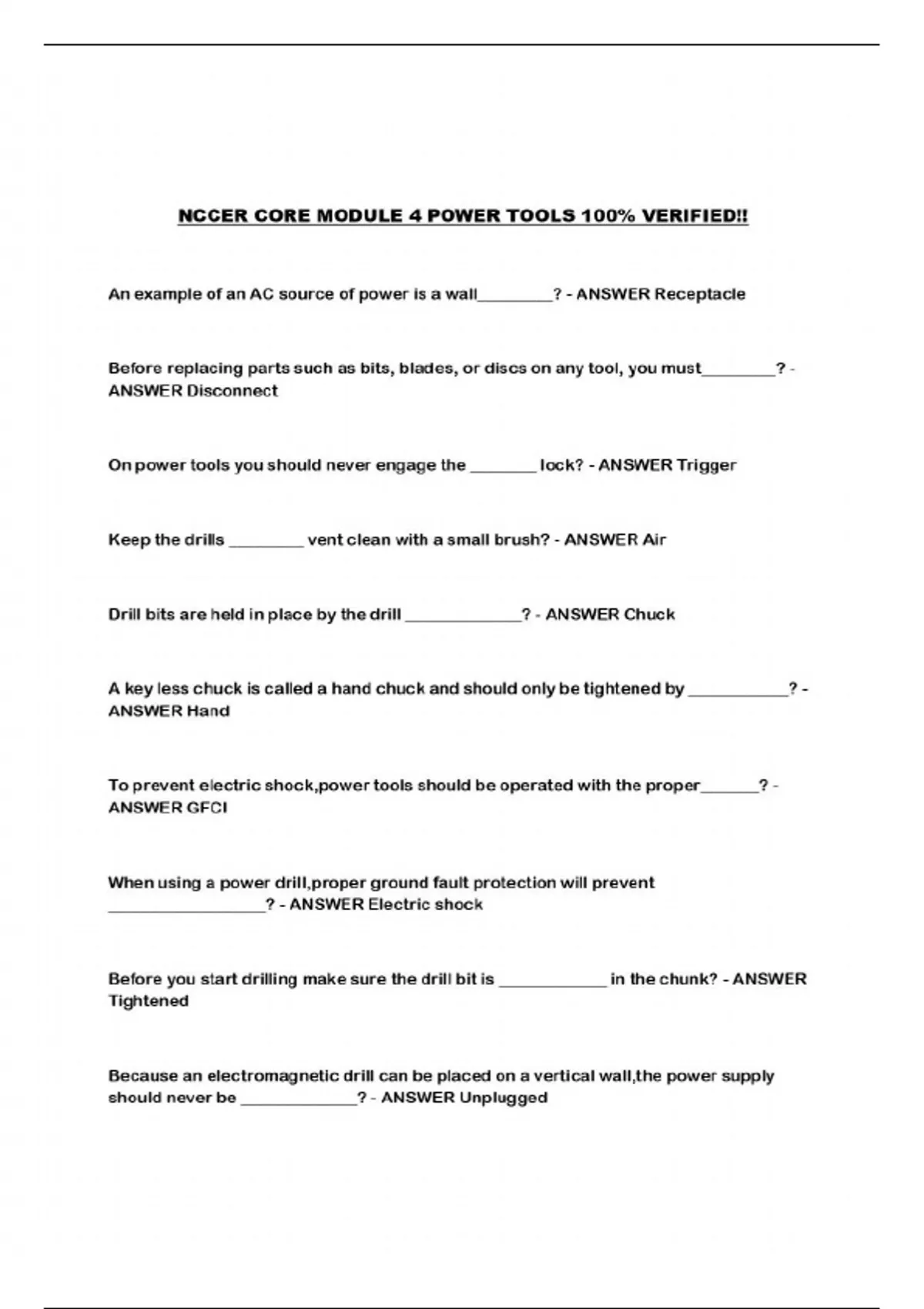 NCCER CORE MODULE 4 POWER TOOLS 100% VERIFIED!!