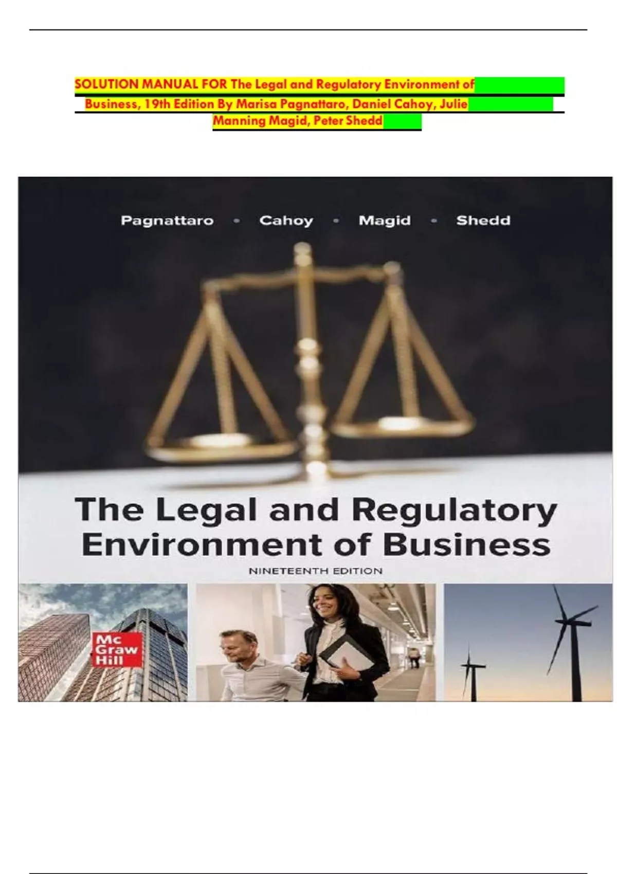 SOLUTION MANUAL FOR The Legal and Regulatory Environment of Business, 19th Edition By Marisa Pagnattaro, Daniel Cahoy, Julie Manning Magid, Peter Shedd |All Chapters | Latest Version 2025 A+