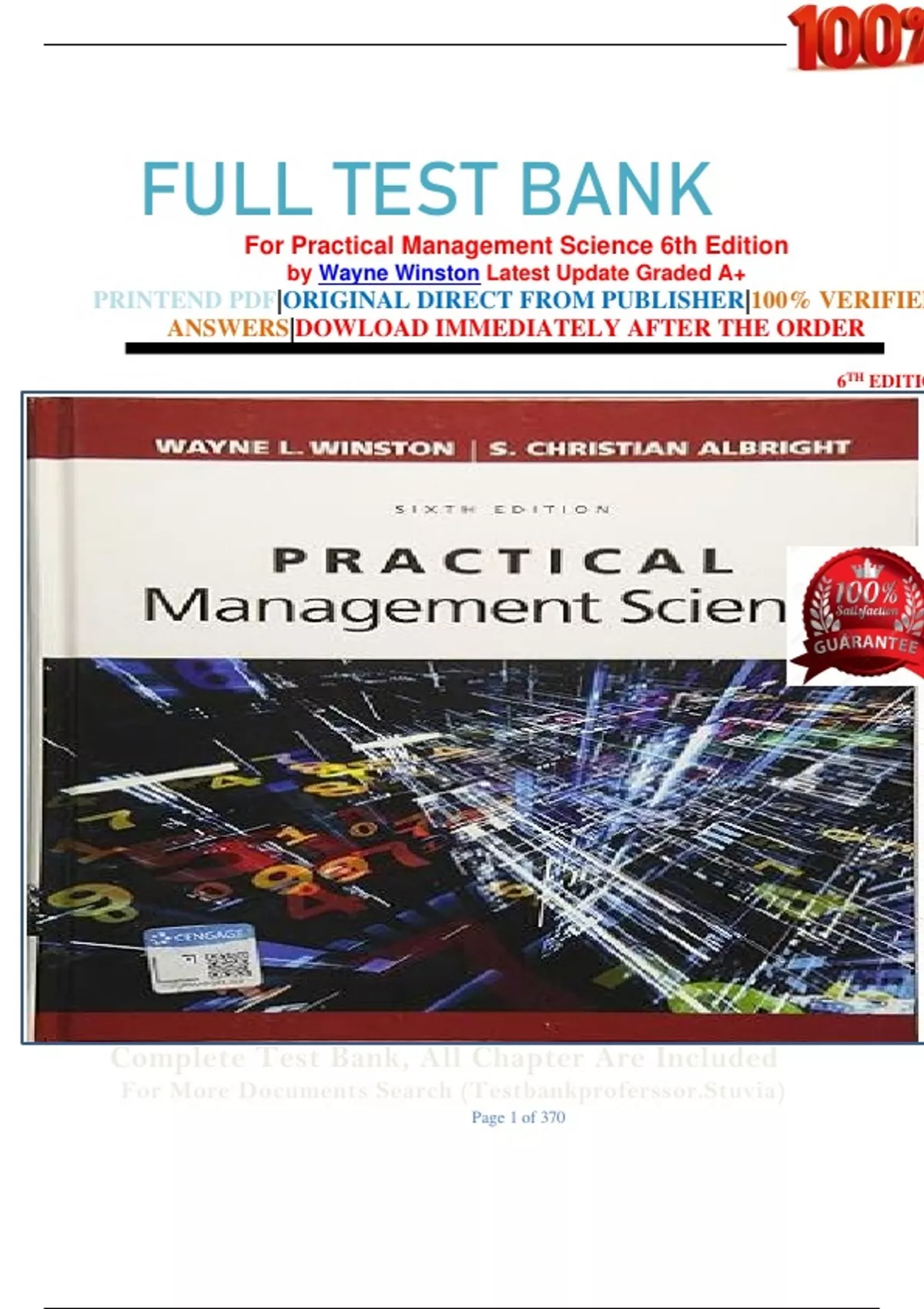 , TEST BANK FOR PRACTICAL MANAGEMENT SCIENCE, 6TH EDITION BY L. WINSTON.
