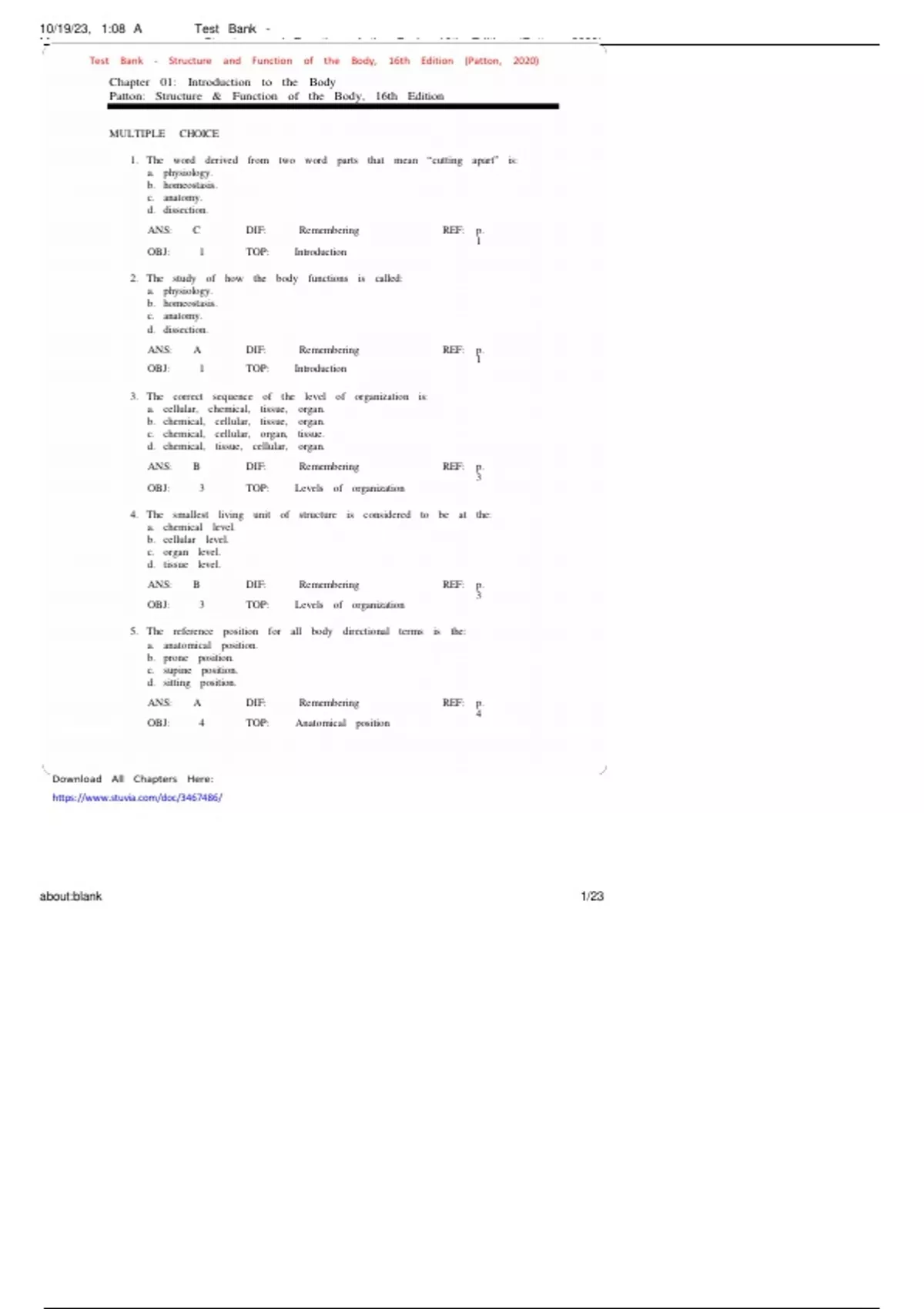Testvn Bankvn -vn Structure vn andvn Functionvn ofvn thevn Body,vn 16thvn Editionvn (Patton,vn 2020)
