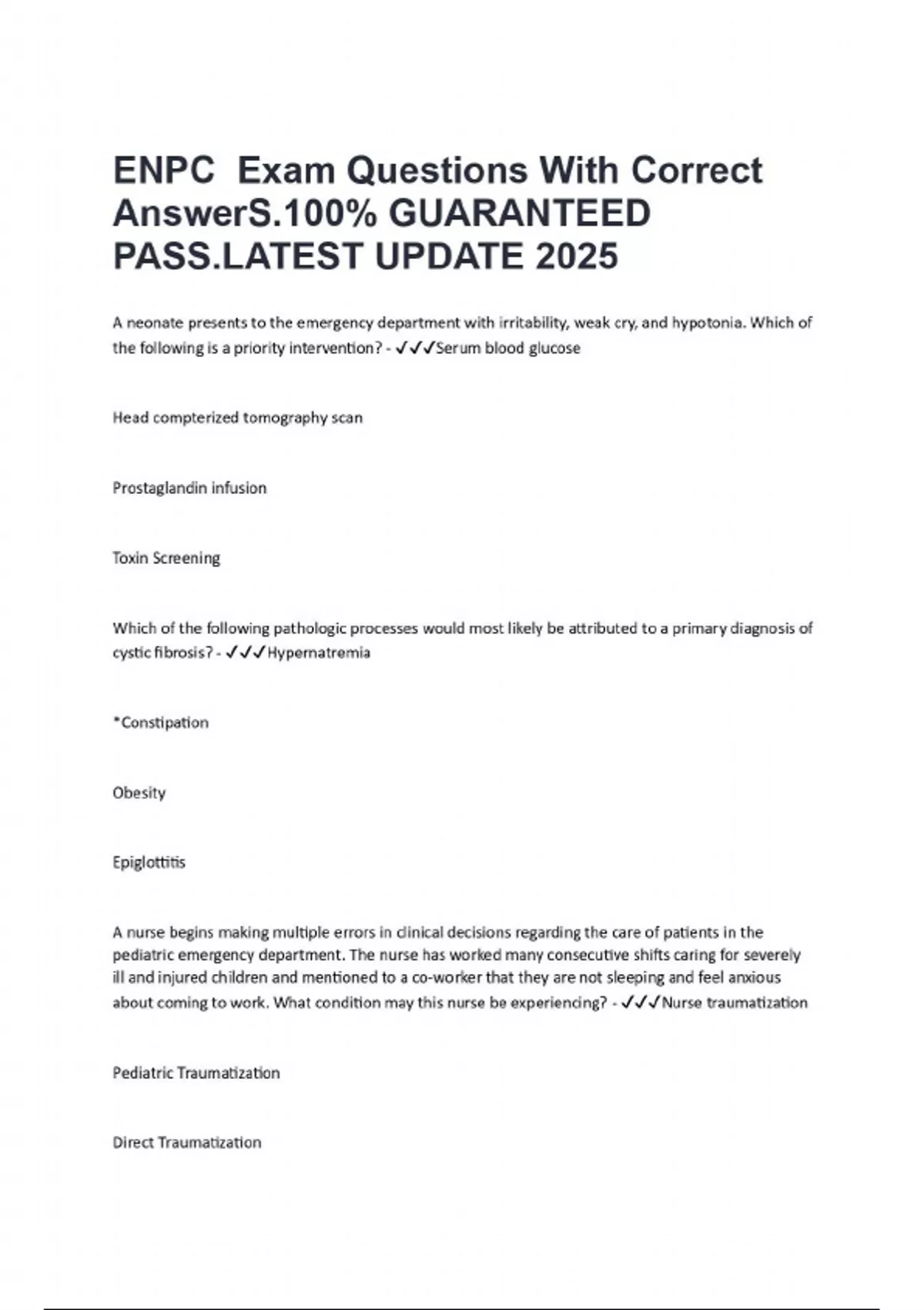 ENCP FINAL TEST.QUESTIONS WITH COMPLETE SOLUTIONS .RATED A+.100%GUARANTEED PASS