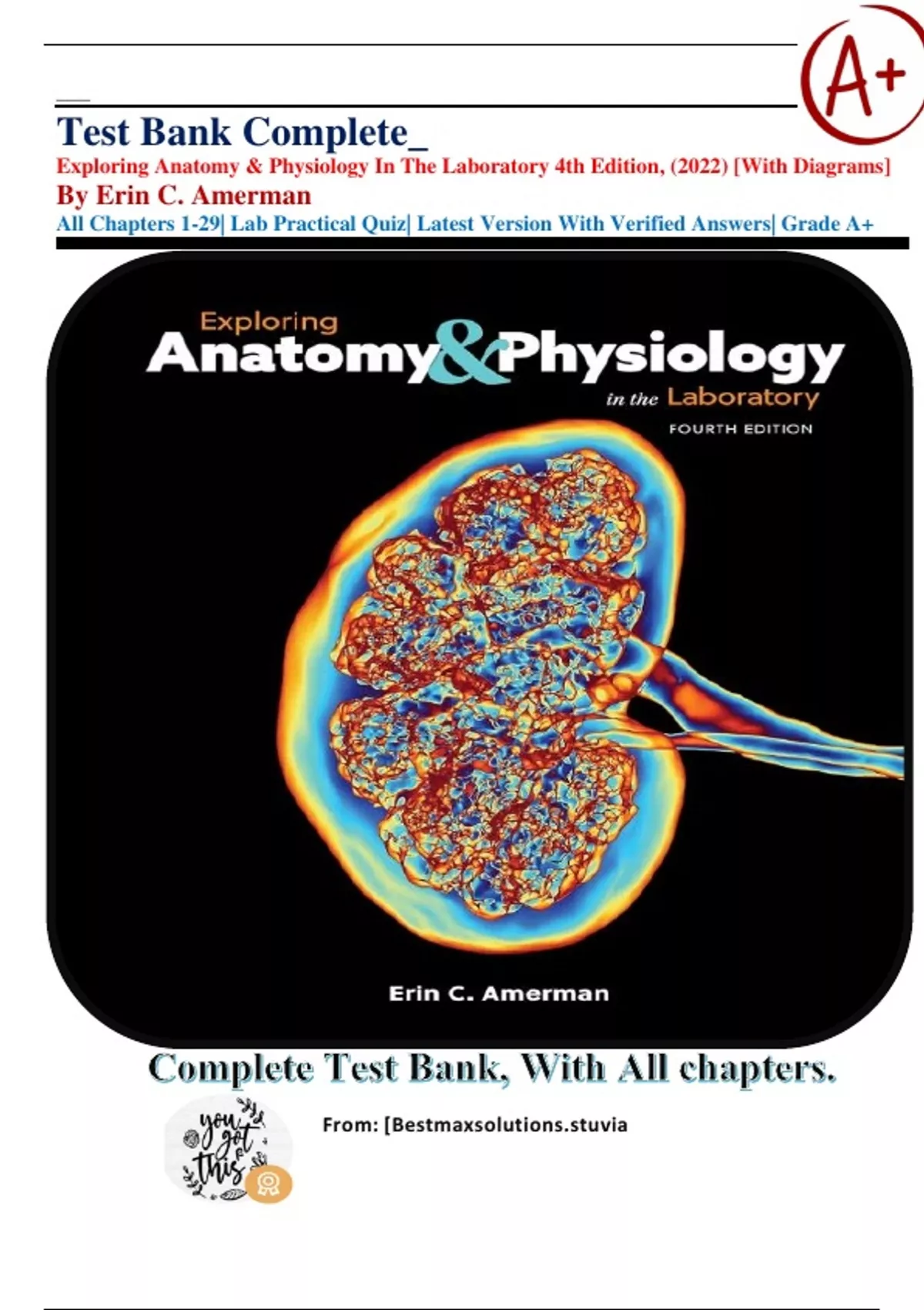 Test Bank Complete_ Exploring Anatomy & Physiology In The Laboratory 4th Edition, (2022) [With Diagrams] By Erin C. Amerman| All Chapters 1-29| Lab Practical Quiz| Latest Version With Verified Answers| Grade A+
