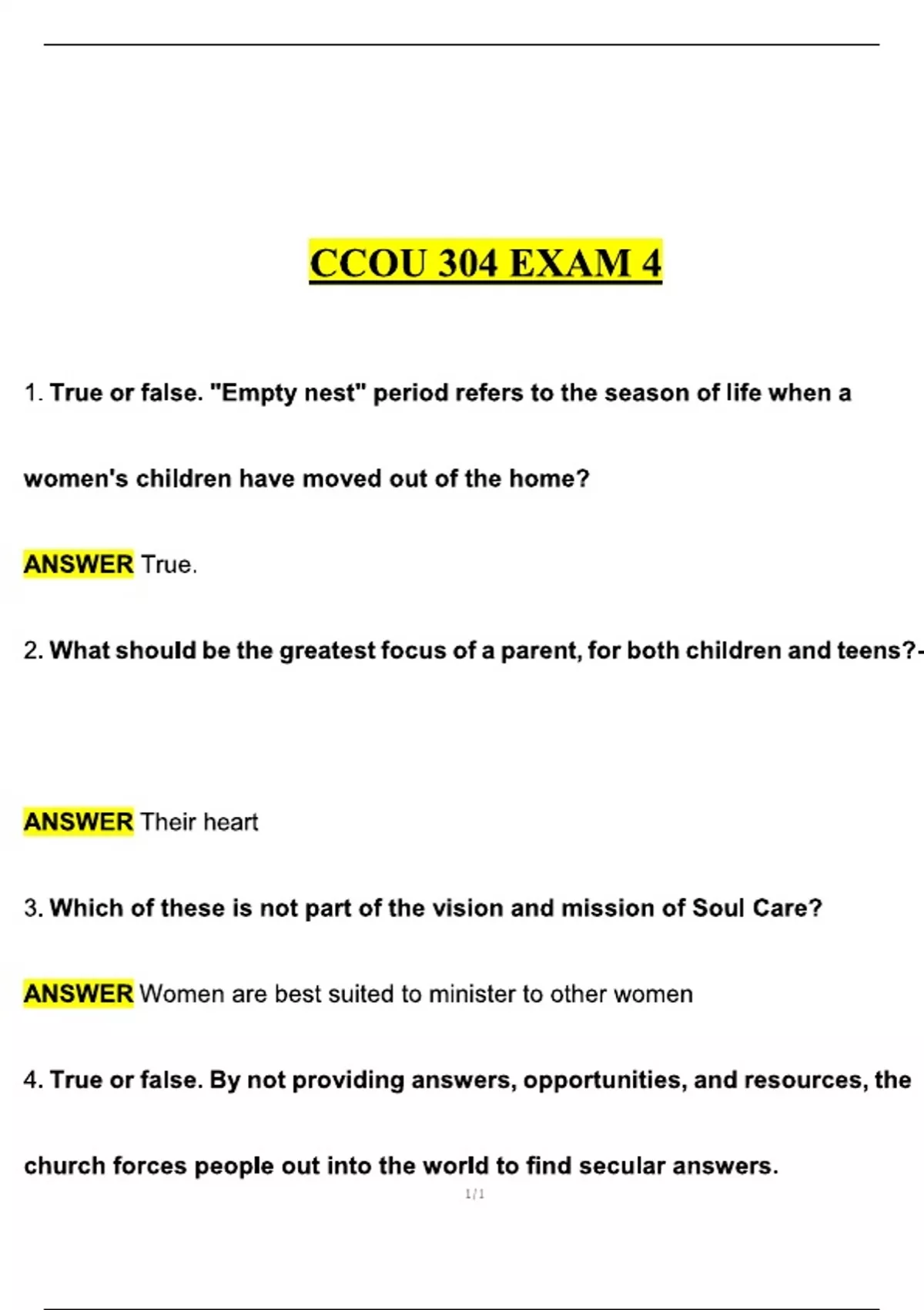 CCOU 304 Exam 3 (4 Versions), Liberty University