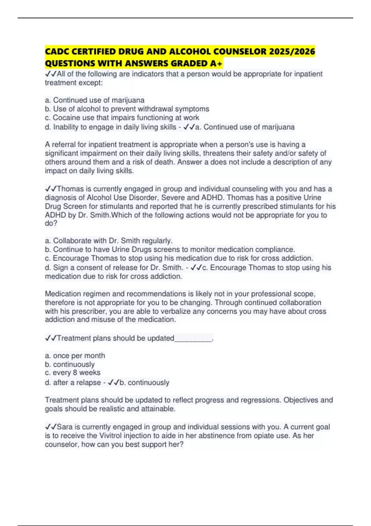 CADC CERTIFIED DRUG AND ALCOHOL COUNSELOR 2025/2026 QUESTIONS WITH ANSWERS GRADED A+