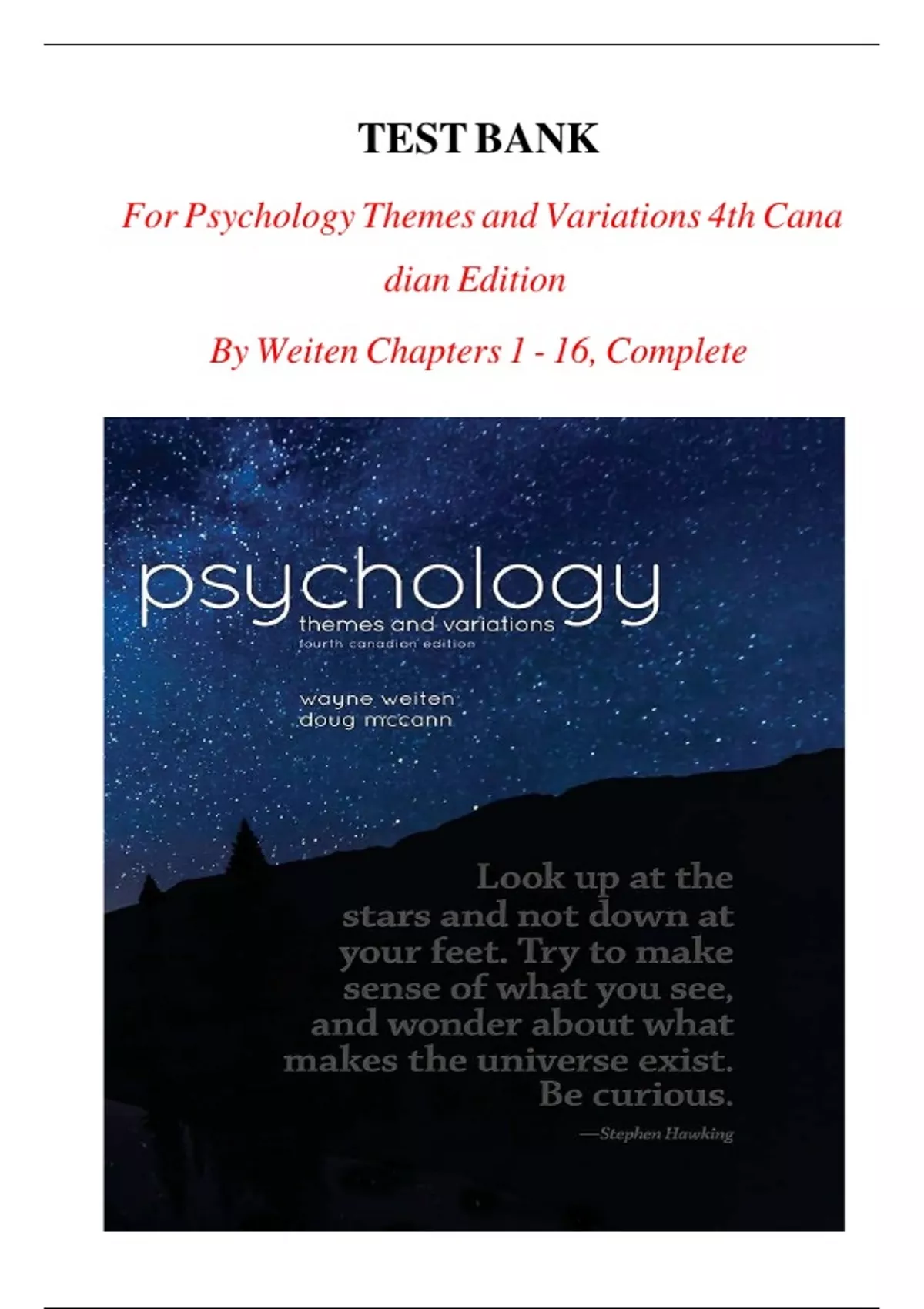 TEST BANK FOR PSYCHOLOGY THEMES AND VARIATIONS 3RD CANADIAN EDITION QUESTIONS WITH CORRECT DETAILED ANSWERS VERIFIED A+