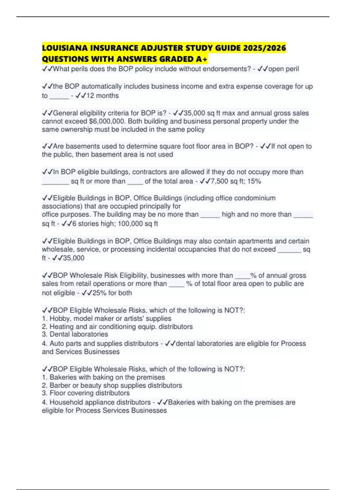 ✔✔General eligibility criteria for BOP is? - ✔✔35,000 sq ft max and annual gross sales