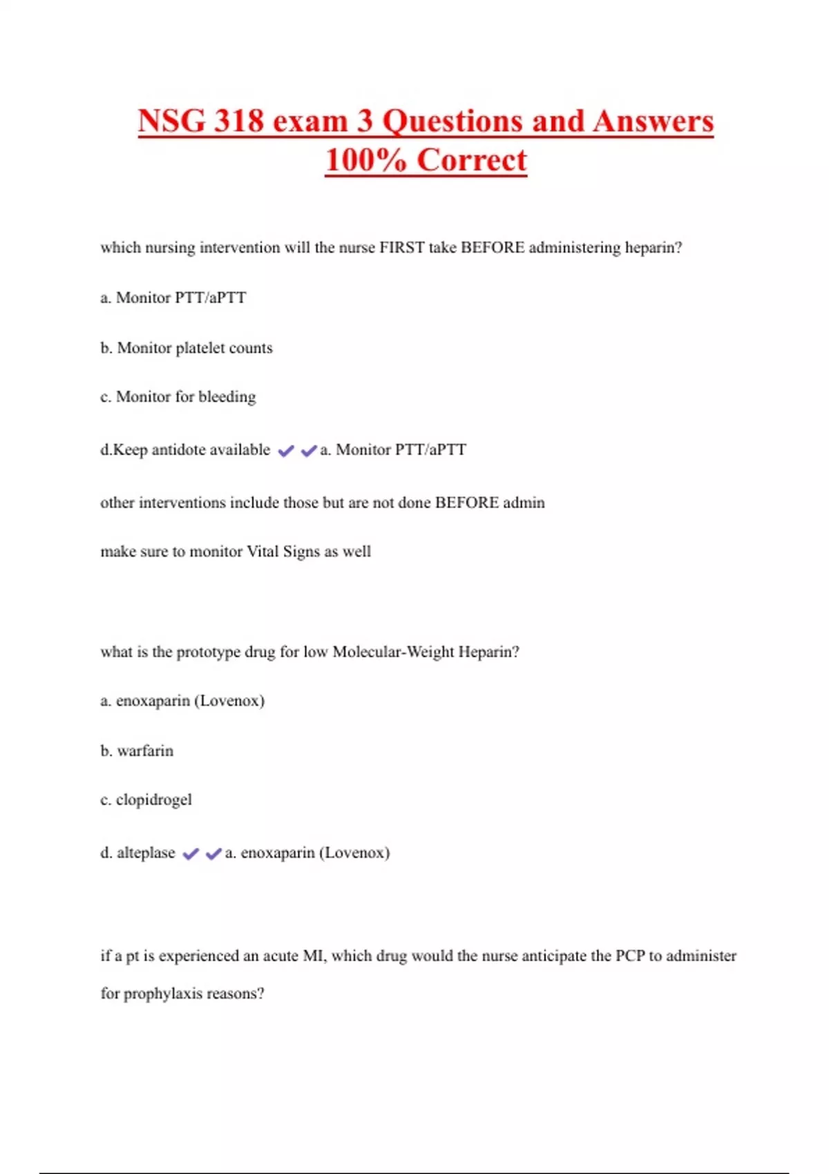 which nursing intervention will the nurse FIRST take BEFORE administering heparin?
