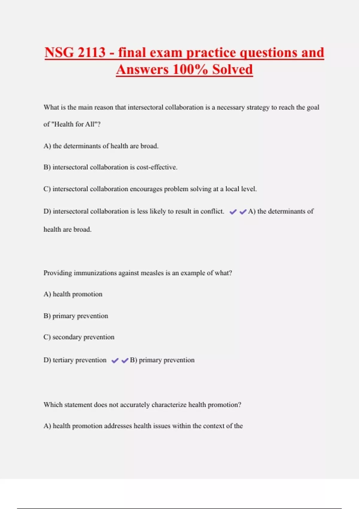 NSG 2113 - final exam practice questions and Answers 100% Solved