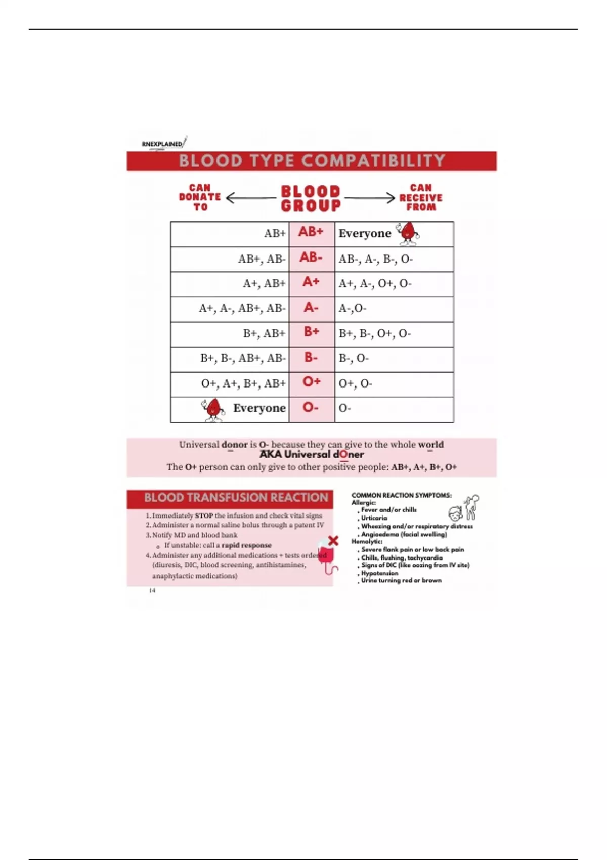 BLOOD TRANSFUSION REACTION COMMON REACTION SYMPTOMS: