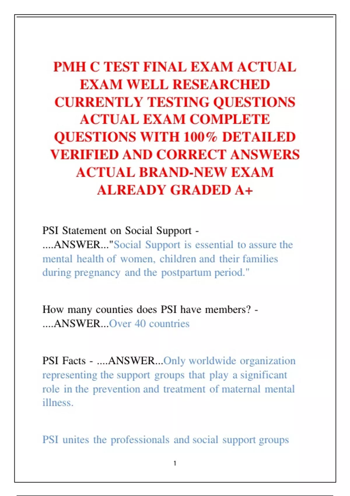 PMH C TEST FINAL EXAM ACTUAL EXAM WELL RESEARCHED CURRENTLY TESTING QUESTIONS ACTUAL EXAM COMPLETE QUESTIONS WITH 100% DETAILED VERIFIED AND CORRECT ANSWERS ACTUAL BRAND-NEW EXAM ALREADY GRADED A+