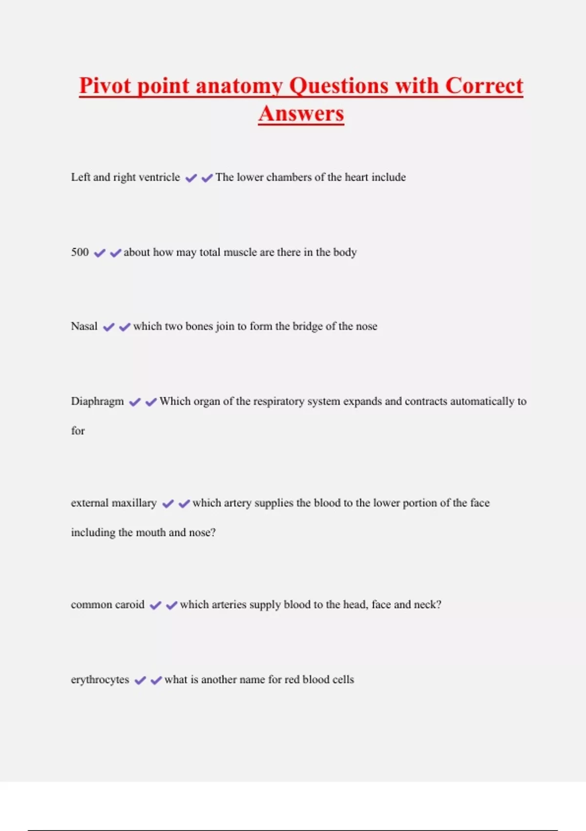Pivot point anatomy Questions with Correct Answers Left and right ventricle The lower chambers of the heart include 500 about how may total muscle are there in the body Nasal which two bones join to form the bridge of the nose Diaphragm Which organ of the respiratory system expands and contracts automatically to for