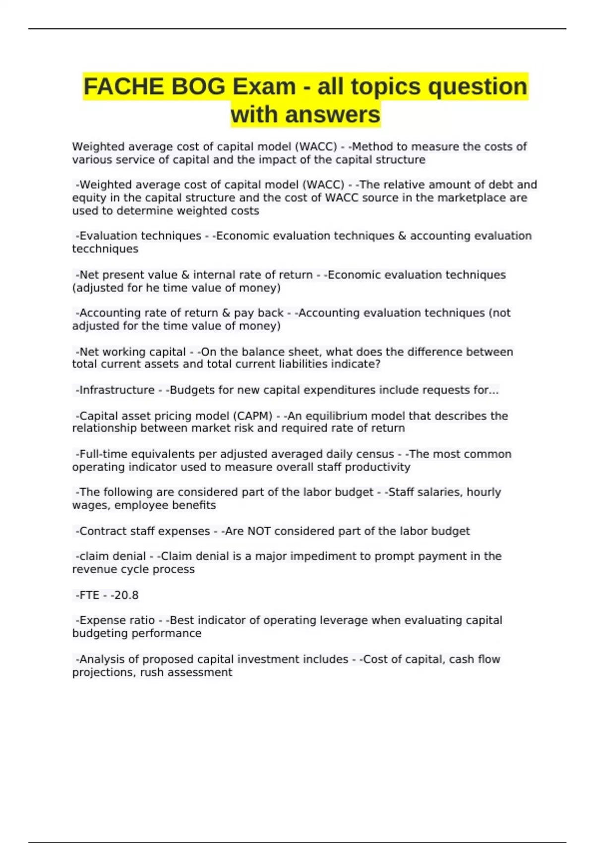 FACHE BOG Exam - all topics question with answers