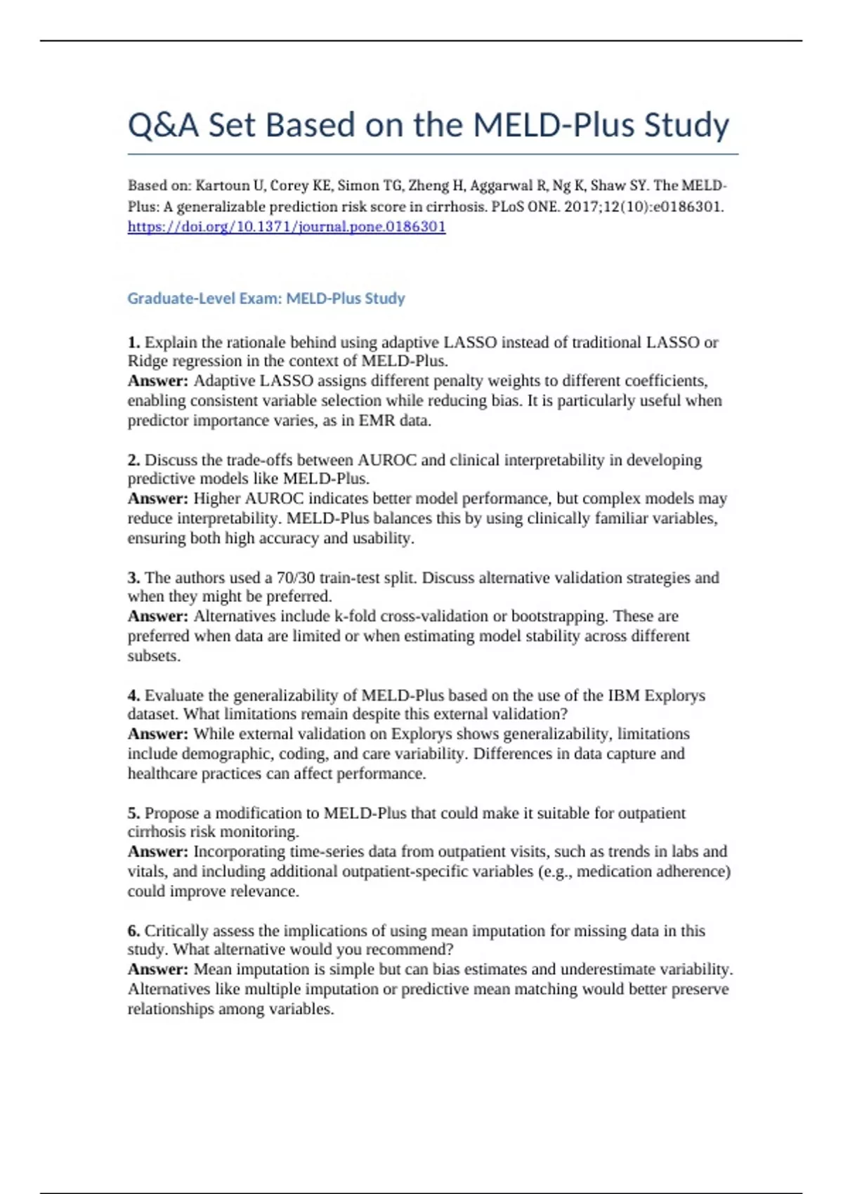 Graduate-Level Exam: MELD-Plus Study