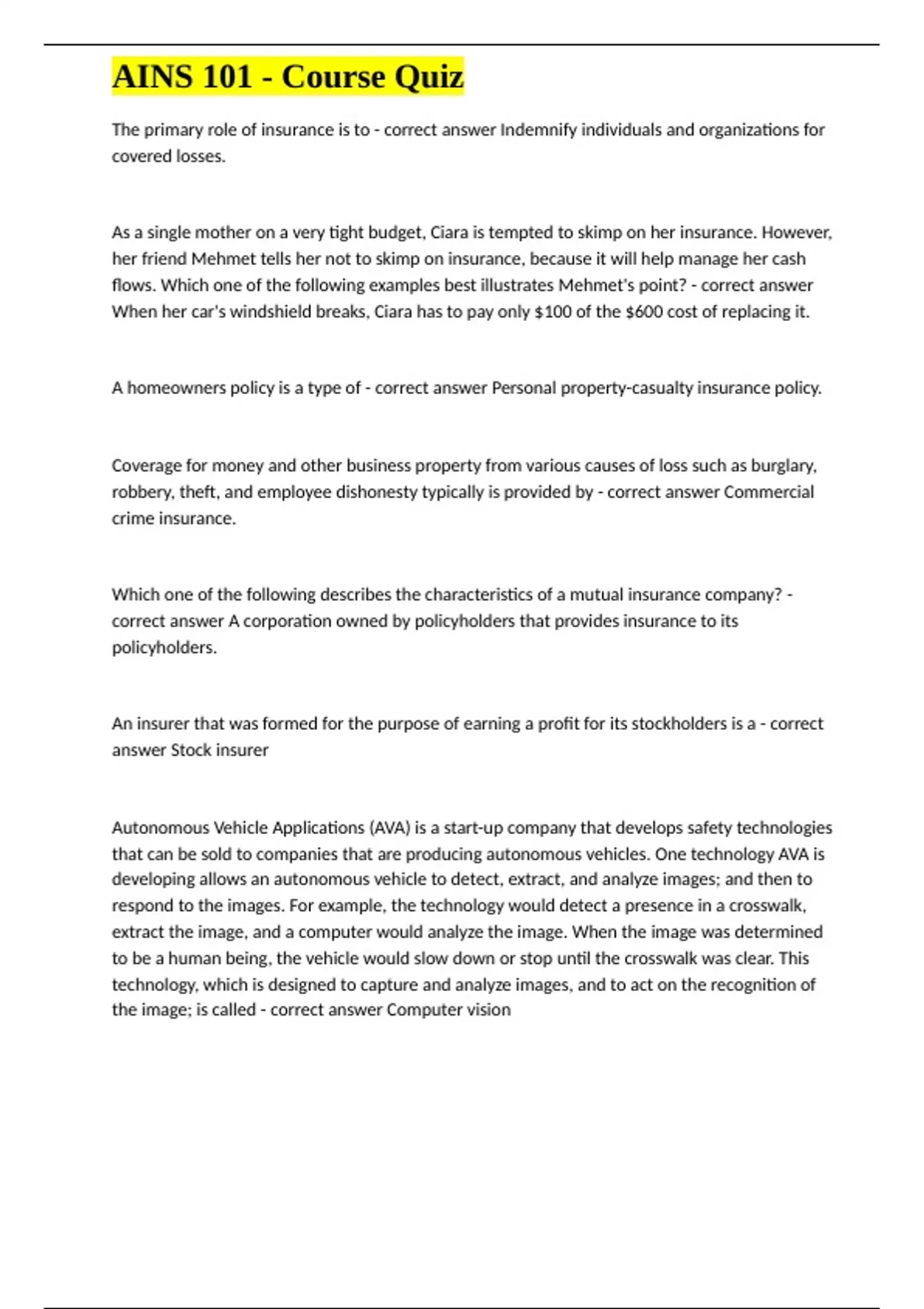 The primary role of insurance is to - correct answer Indemnify individuals and organizations for