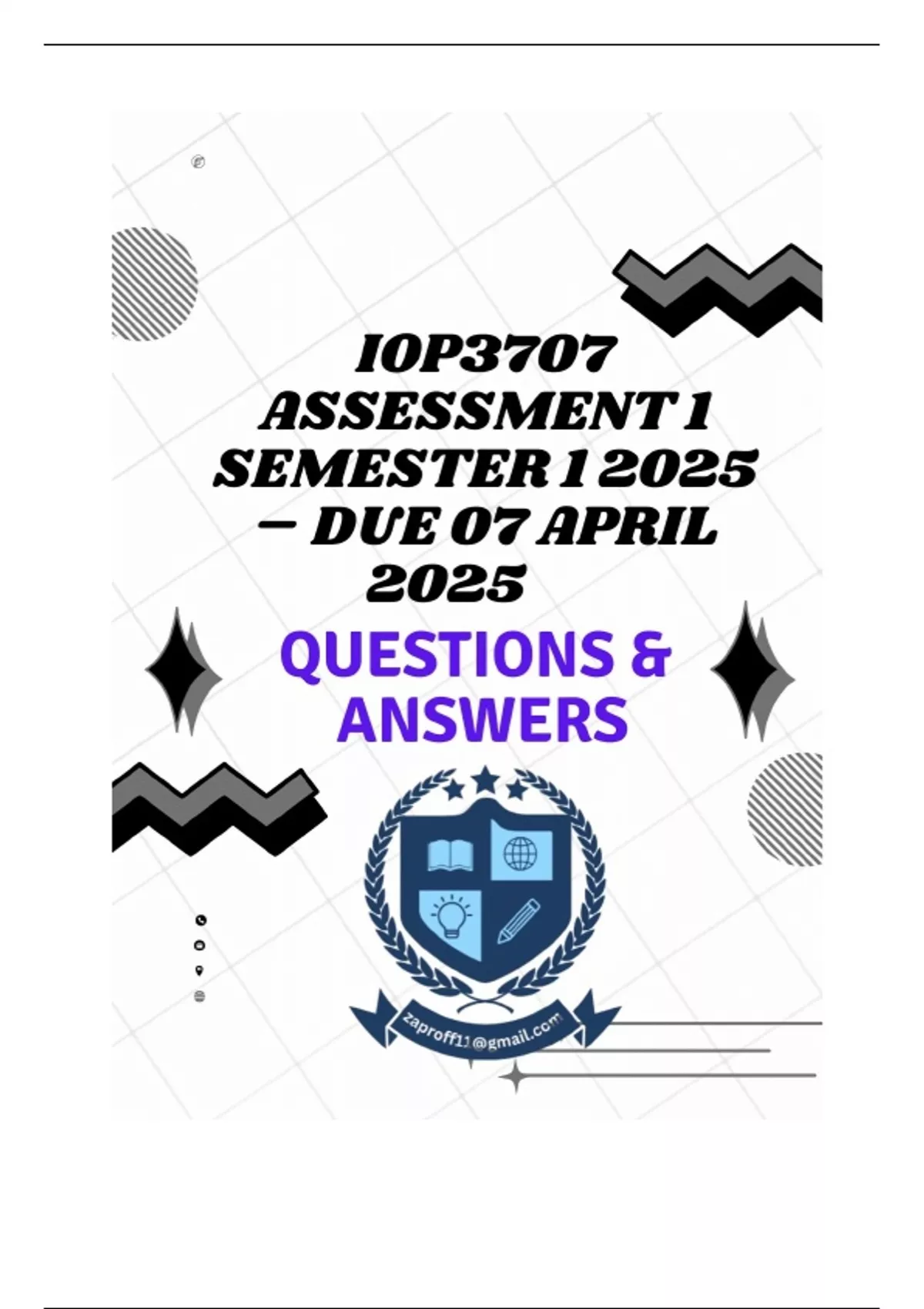 IOP3707 ASSESSMENT 1 SEMESTER 1 2025 – DUE 07 APRIL 2025