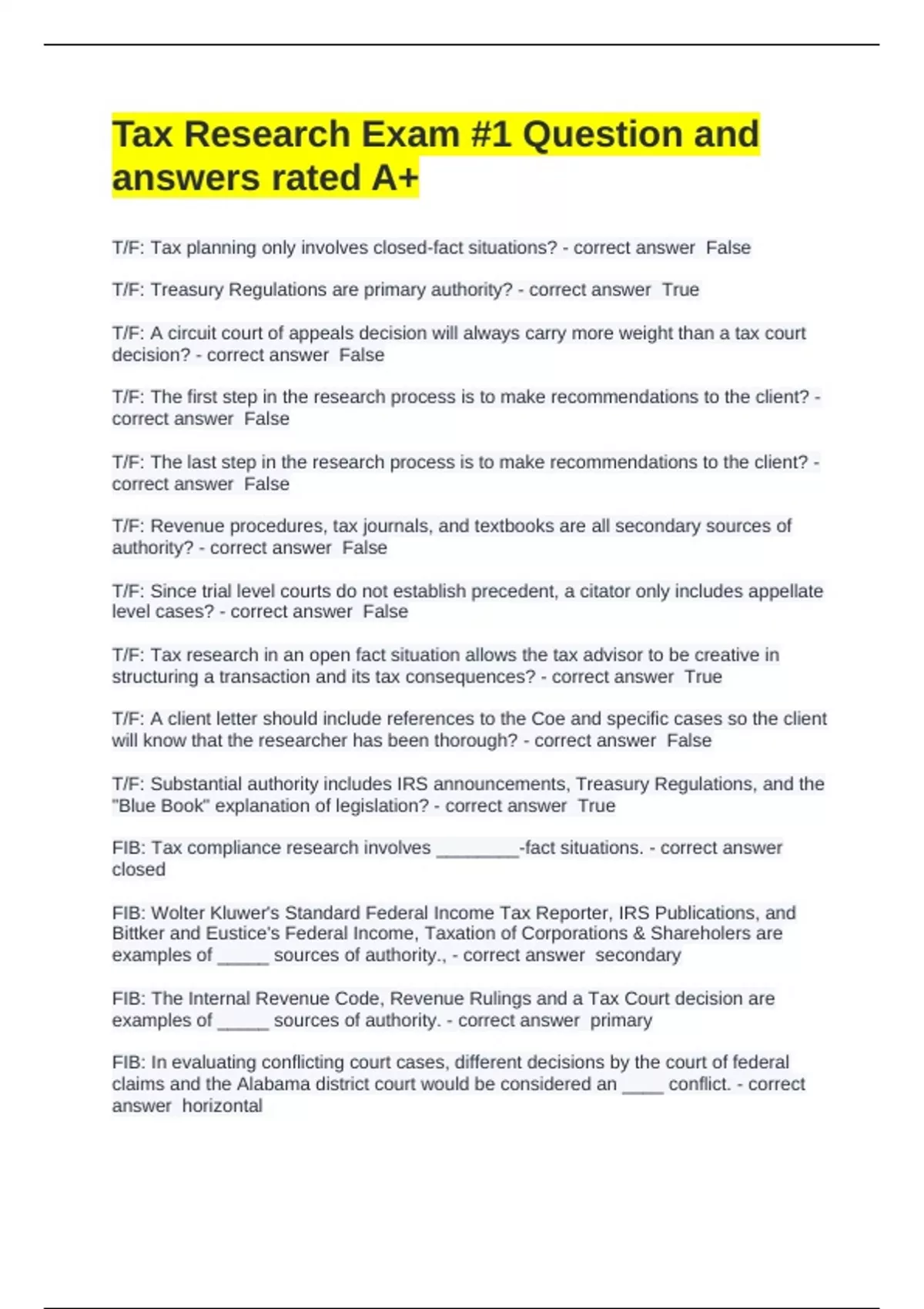 T/F: Treasury Regulations are primary authority? - correct answer True