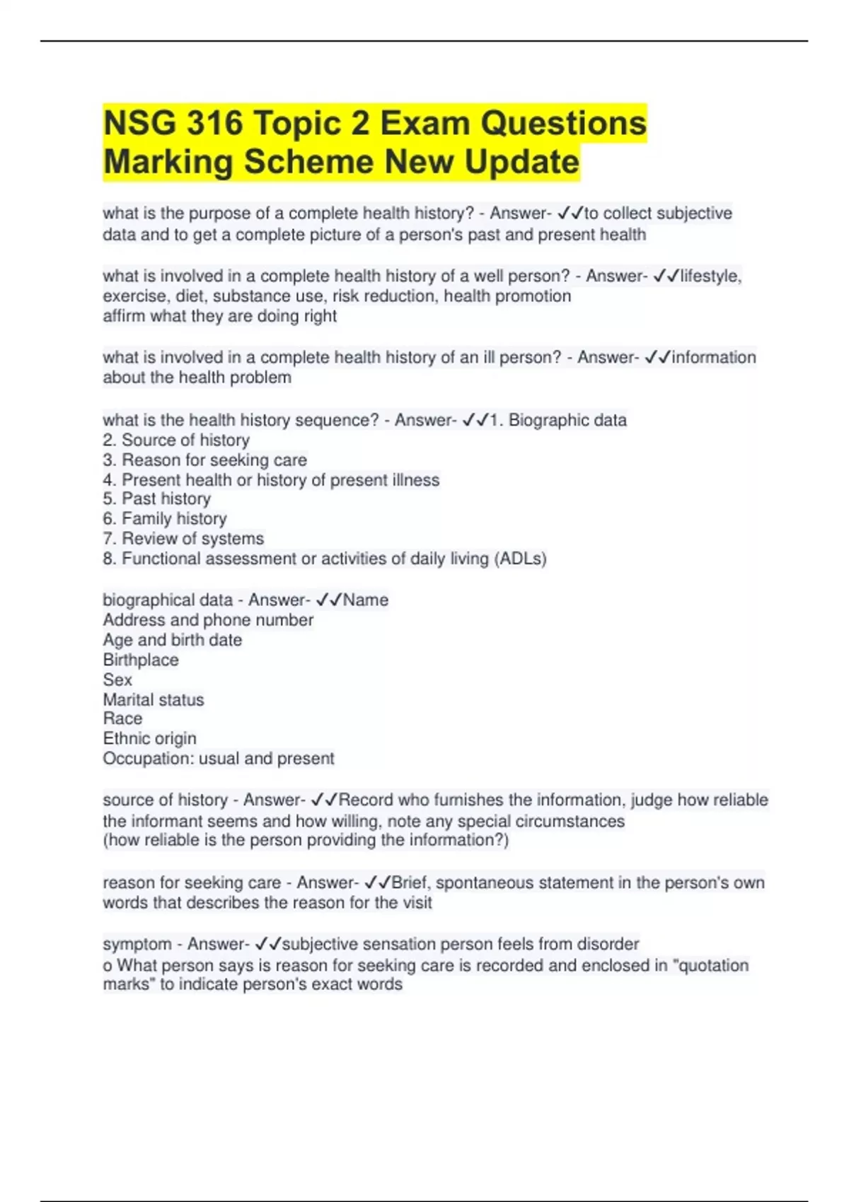 what is the health history sequence? - Answer- ✔✔1. Biographic data