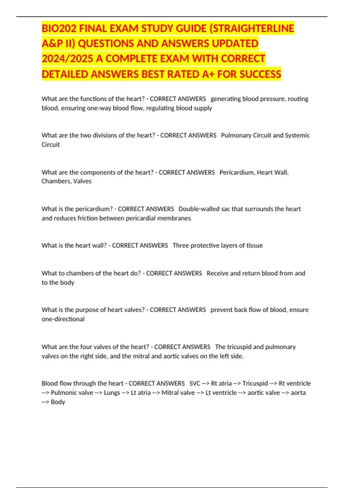BIO202 FINAL EXAM STUDY GUIDE (STRAIGHTERLINE A&P II) QUESTIONS AND ANSWERS UPDATED 2024/2025 A COMPLETE EXAM WITH CORRECT DETAILED ANSWERS BEST RATED A+ FOR SUCCESS