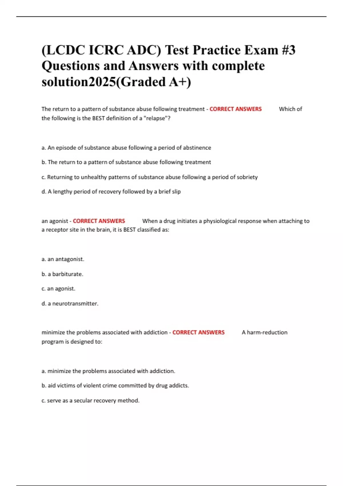 The return to a pattern of substance abuse following treatment - CORRECT ANSWERS Which of