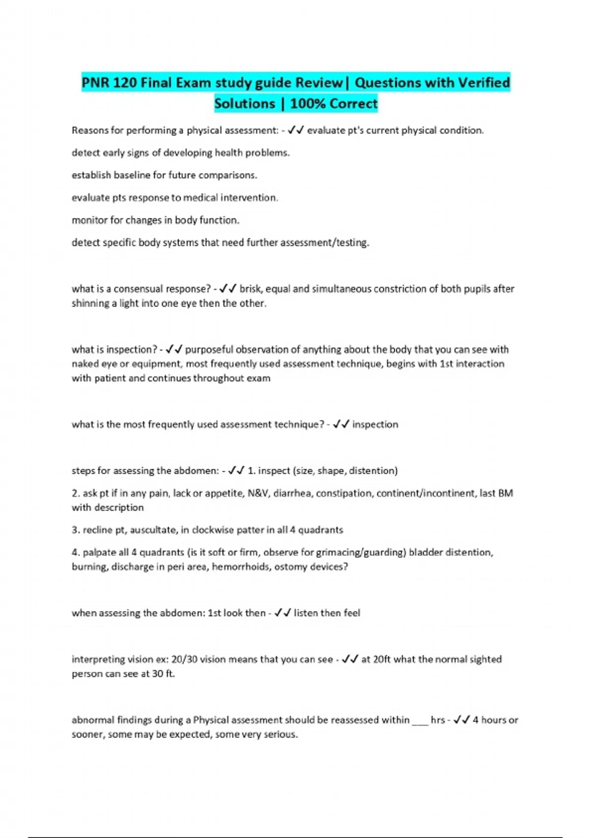 PNR 120 Final Exam study guide Review| Questions with Verified Solutions | 100% Correct