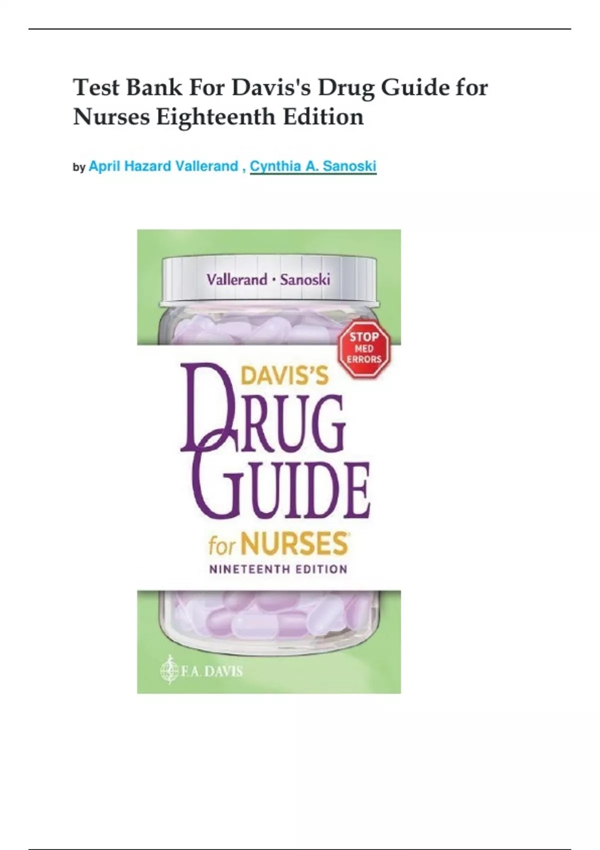 Davis's Drug Guide for Nurses by April Hazard Vallerand