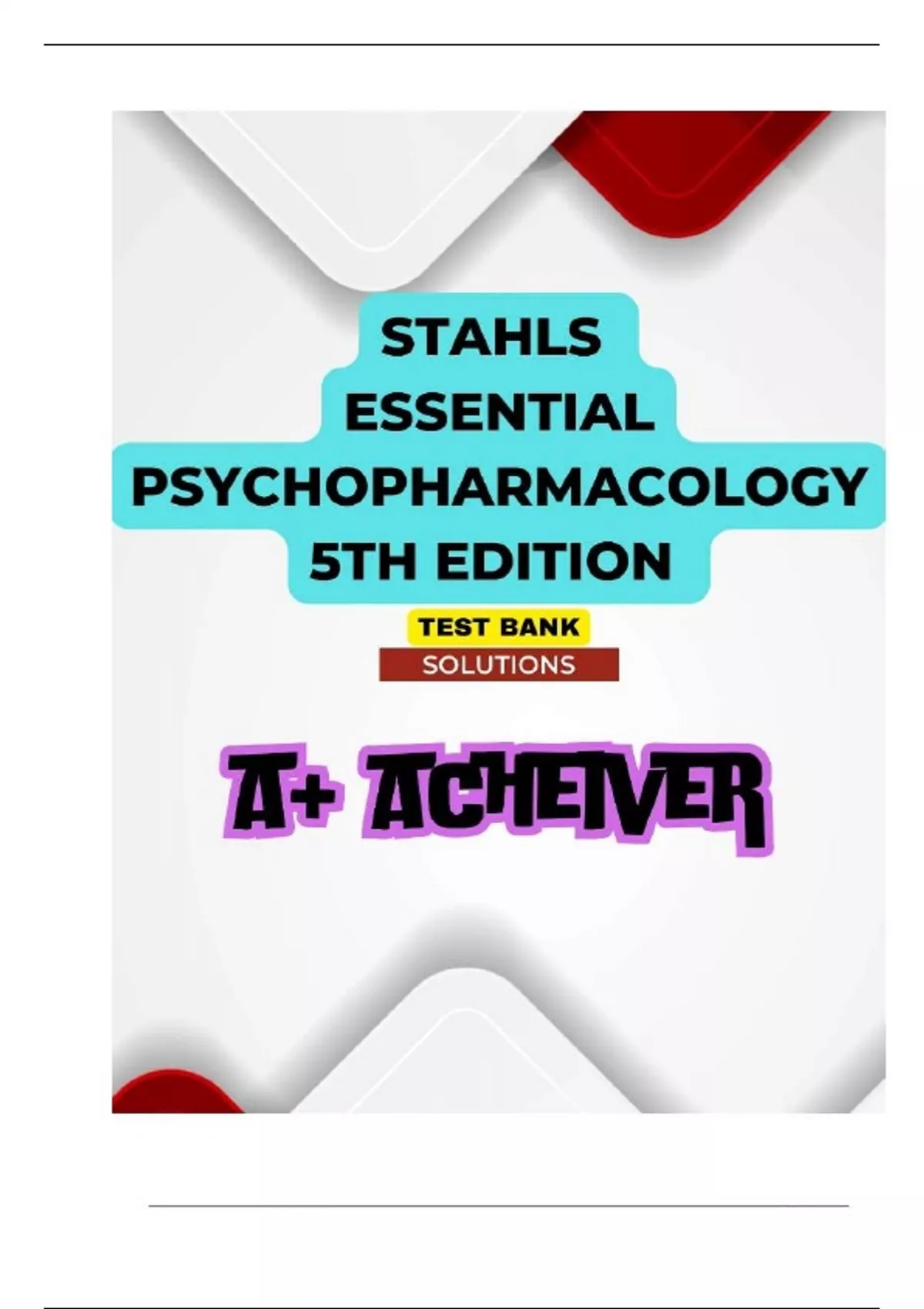 Test bank for stahl's essential psychopharmacology neuroscientific basis and practical applications 5th edition | complete guide | Chapter 1-13 | Complete Questions And Answers A+