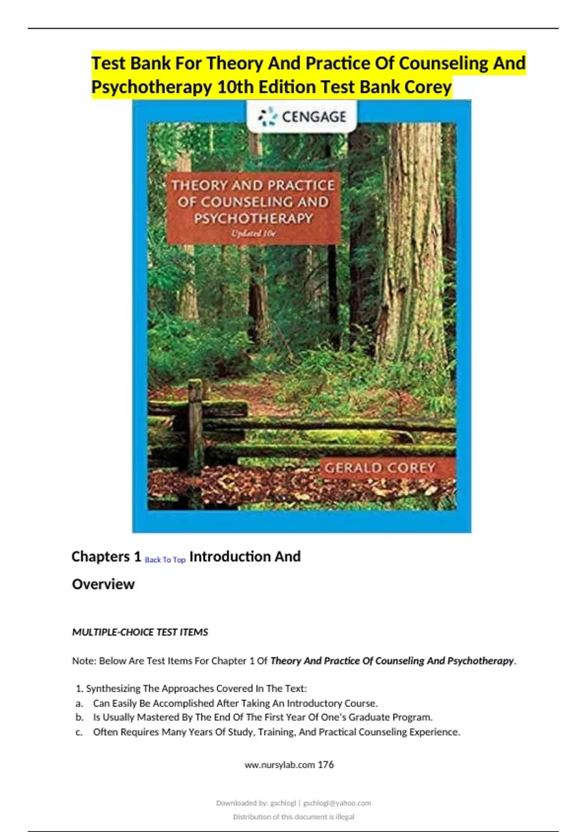 Note: Below Are Test Items For Chapter 1 Of Theory And Practice Of Counseling And Psychotherapy.