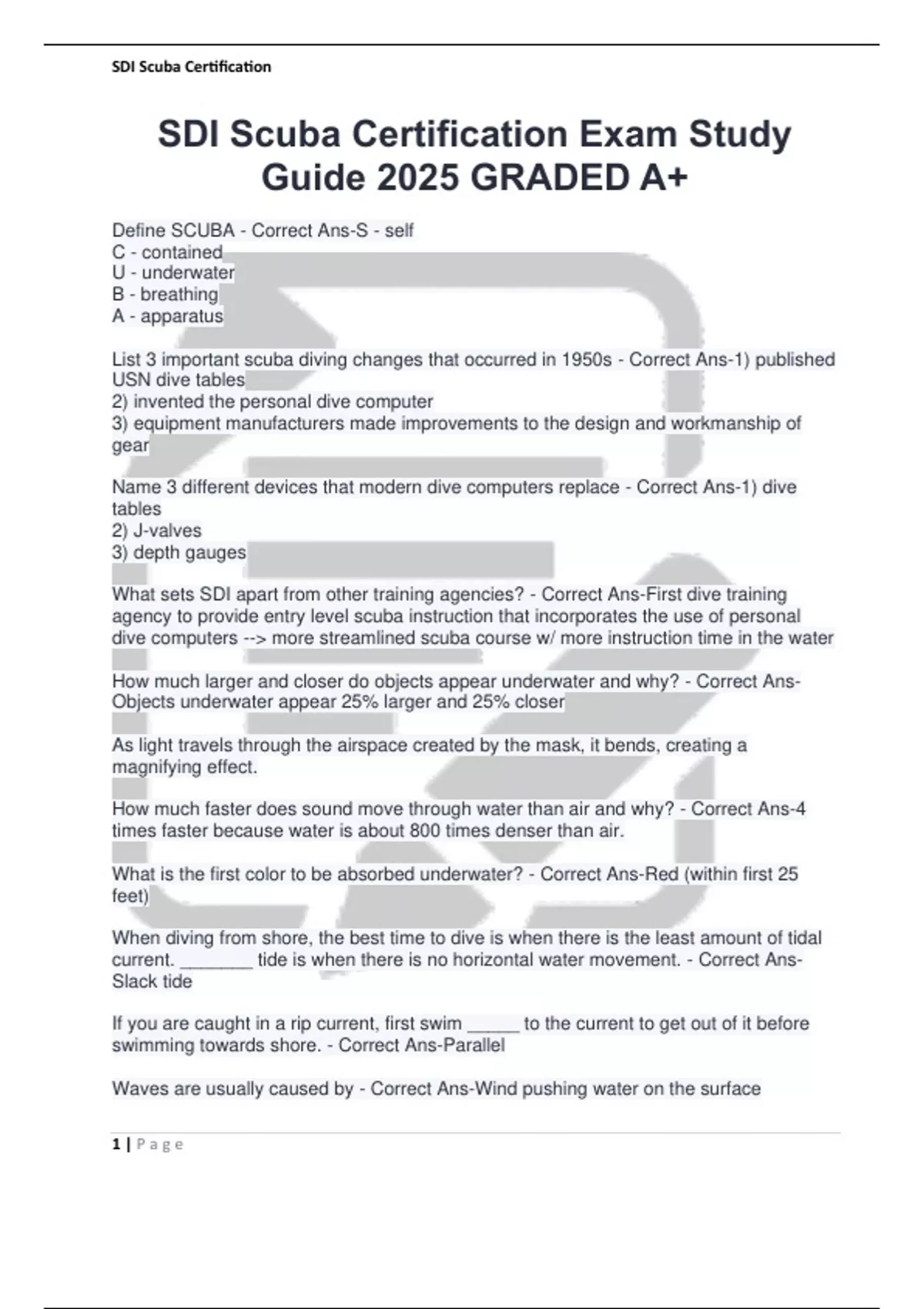 SDI Scuba Certification Exam Study