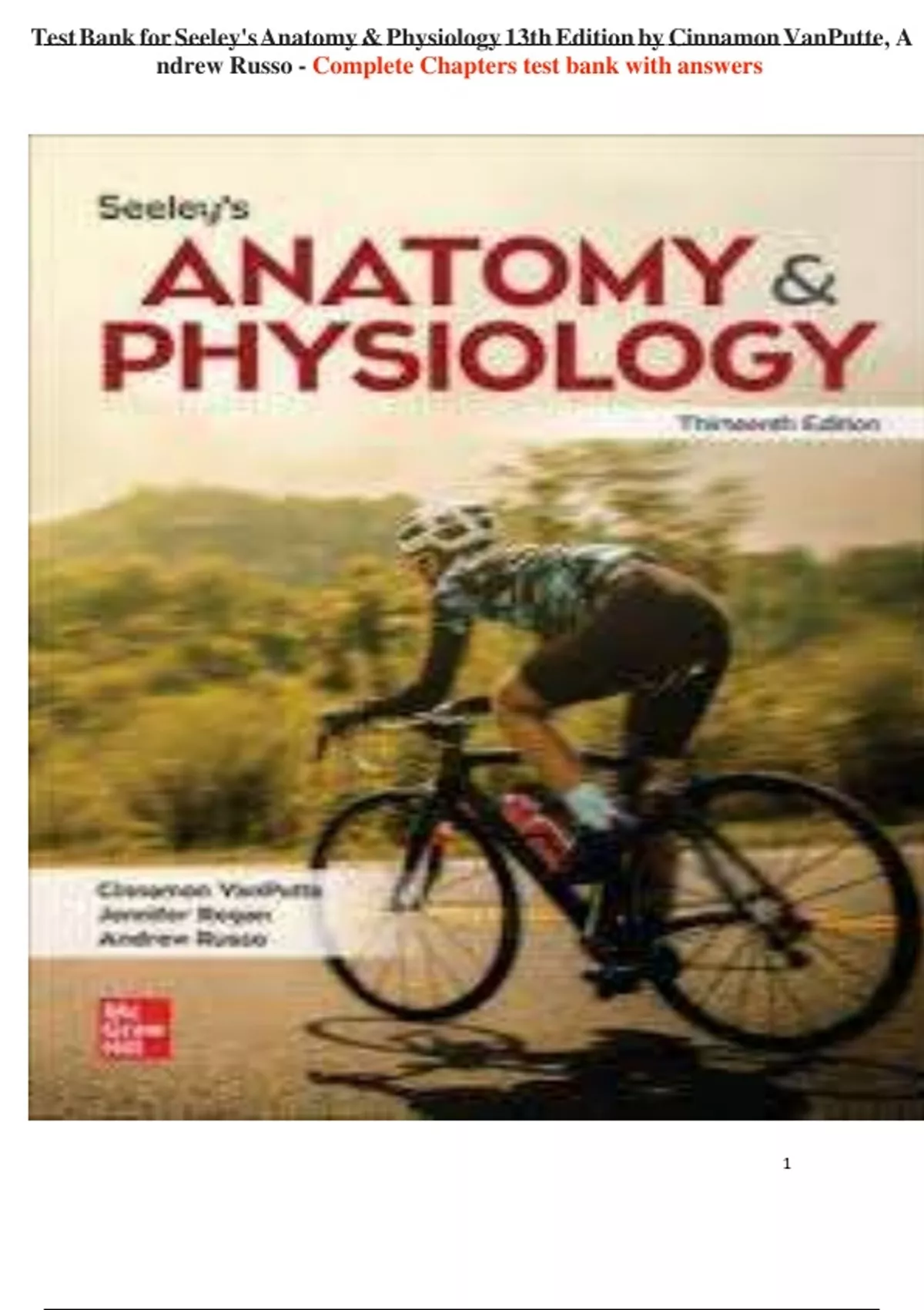 Test Bank for Seeley's Anatomy & Physiology 13th Edition by Cinnamon VanPutte, A