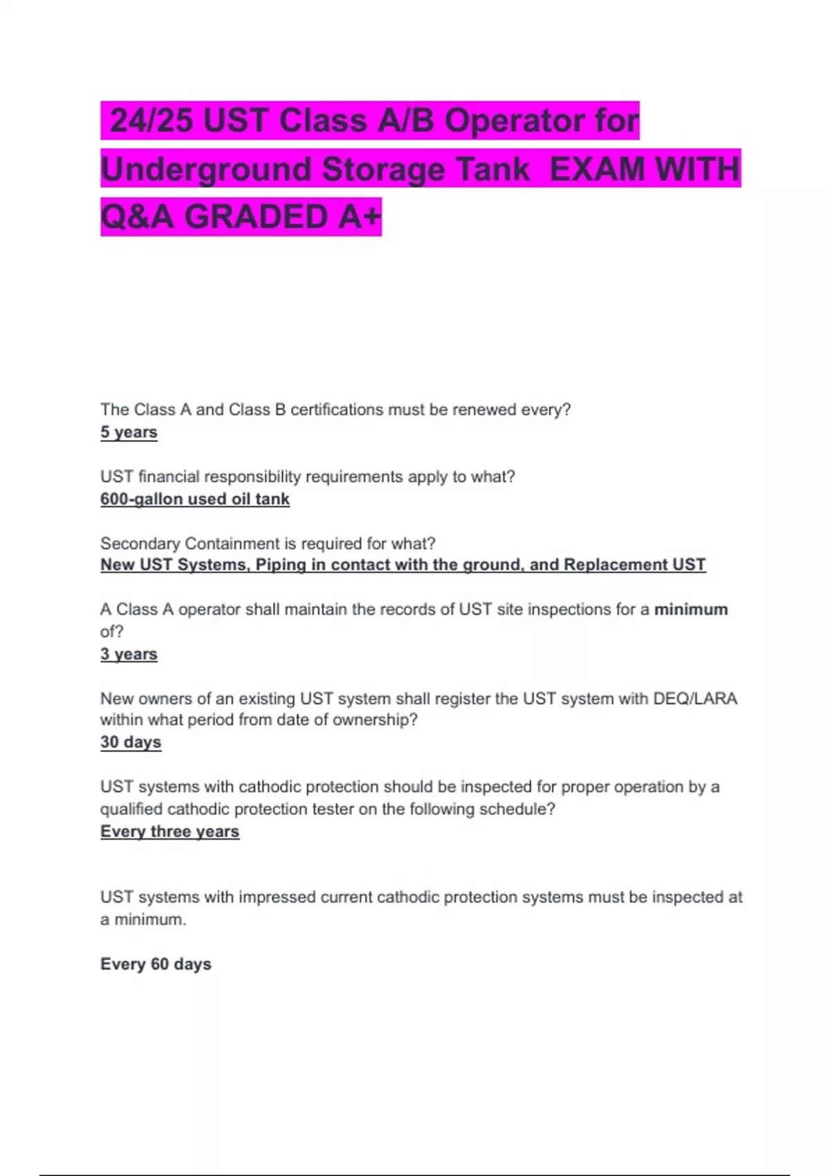 Class A operator shall maintain the records of UST site inspections for aminimum