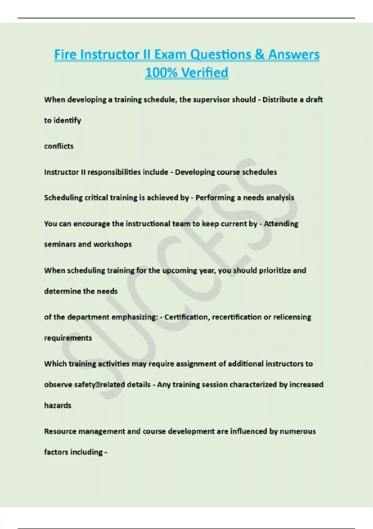 Fire Instructor II Exam Questions & Answer Verified by Experts