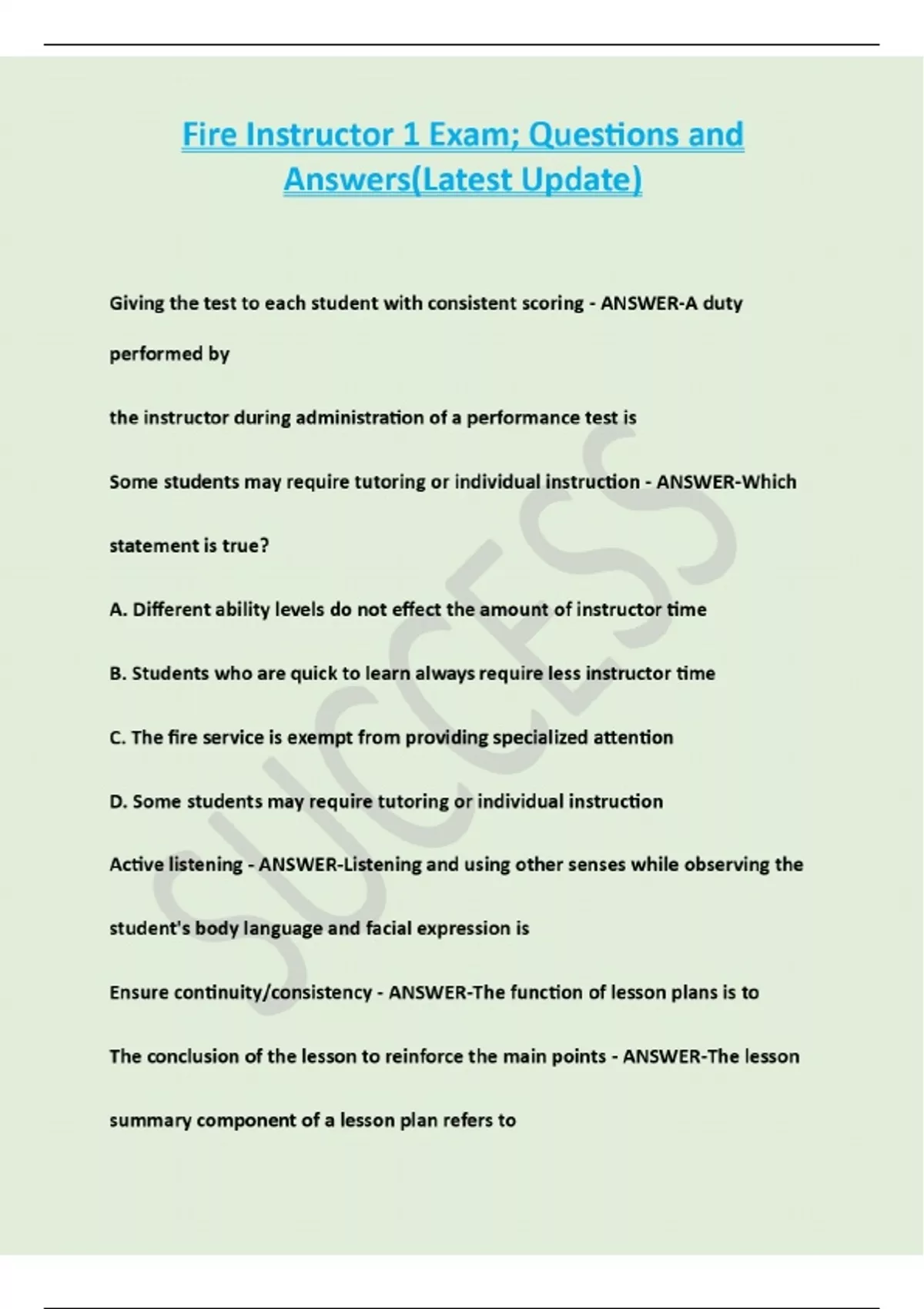 Fire Instructor 1 Exam; Questions and Answers 100% Solved