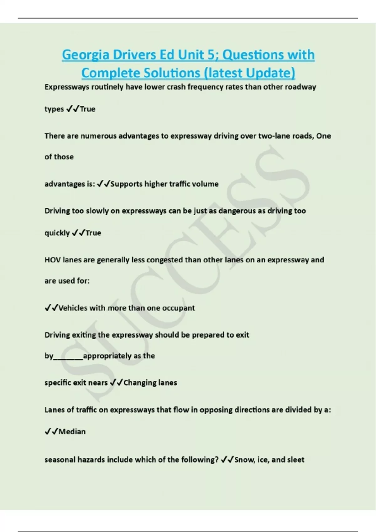 Georgia Drivers Ed Unit 5; Questions and Answers 100% Correct