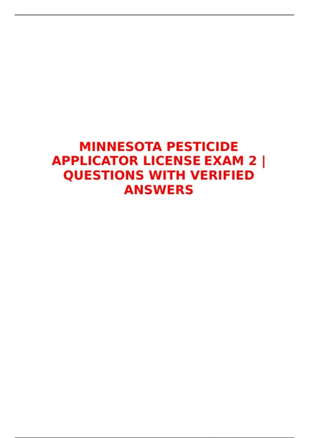 MINNESOTA PESTICIDE APPLICATOR LICENSE EXAM 2 | QUESTIONS WITH VERIFIED ANSWERS