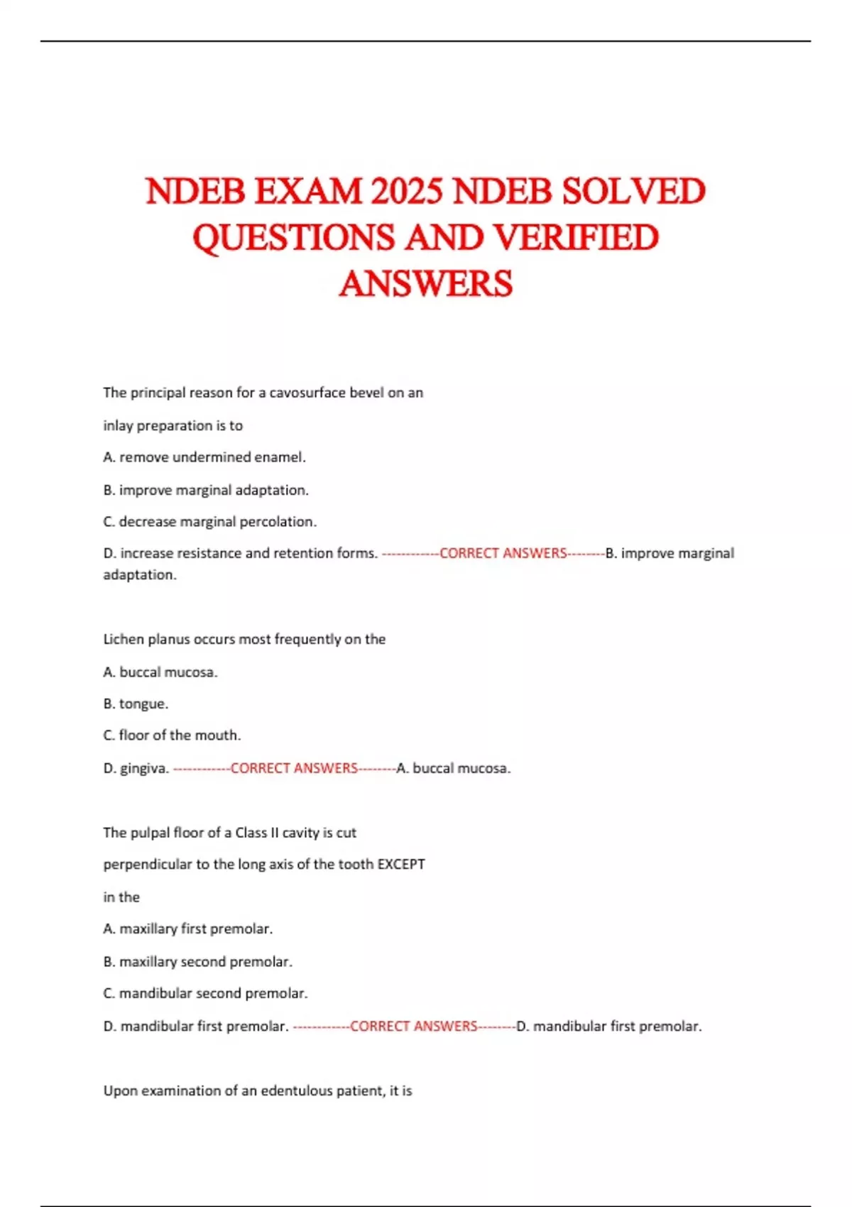 NDEB EXAM 2025 NDEB SOLVED QUESTIONS AND VERIFIED ANSWERS