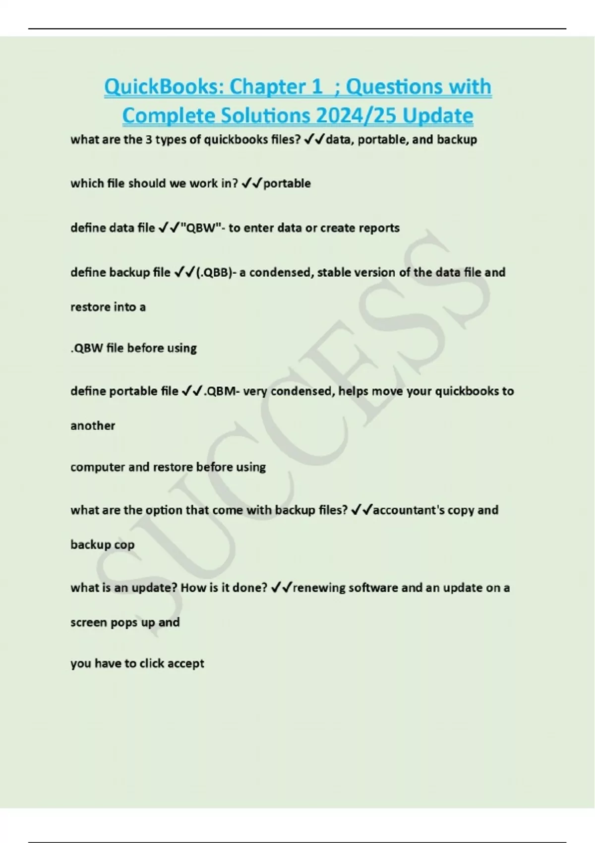 QuickBooks: Chapter 1 ; Questions with Correct Answers