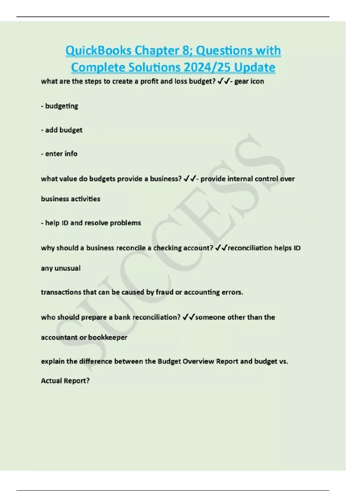 QuickBooks Chapter 8; Questions with Complete Solutions 2024/25 Update