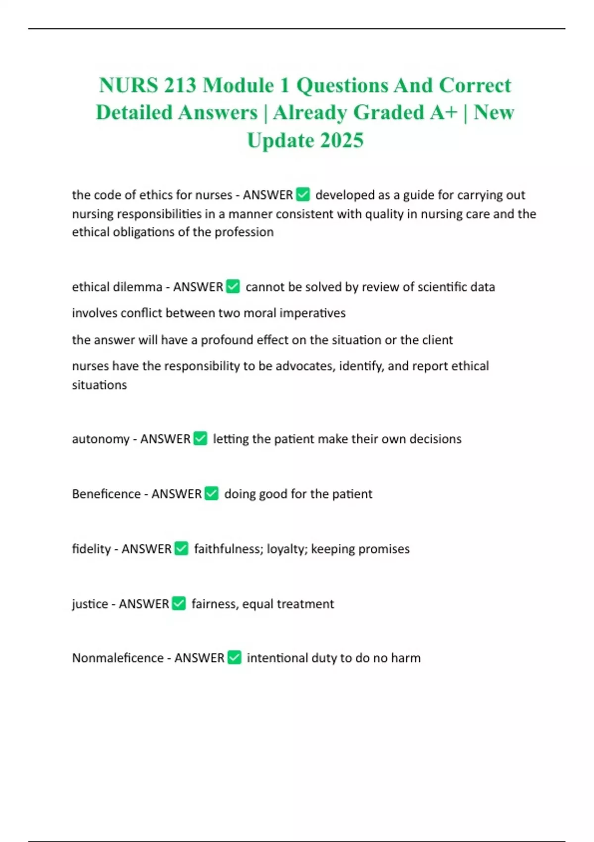 NURS 213 Module 1 Questions And Correct Detailed Answers | Already Graded A+ | New Update 2025