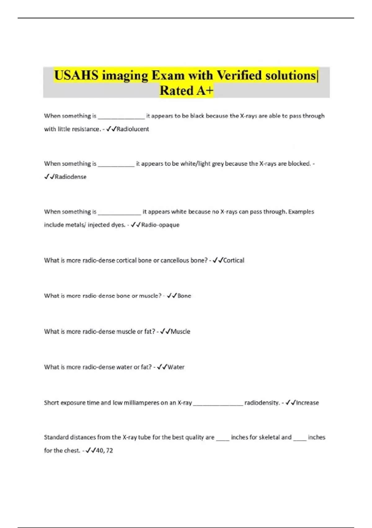 USAHS imaging Exam with Verified solutions| Rated A+