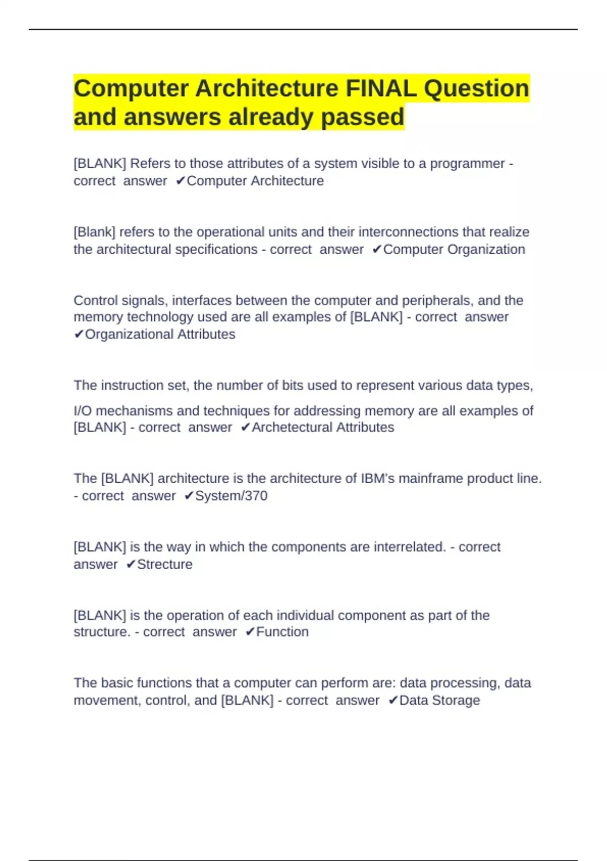 correct answer ✔Computer Architecture