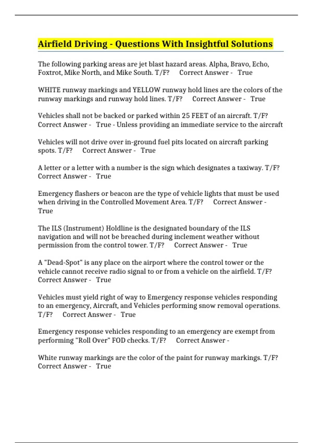 when driving in the Controlled Movement Area. T/F? Correct Answer -