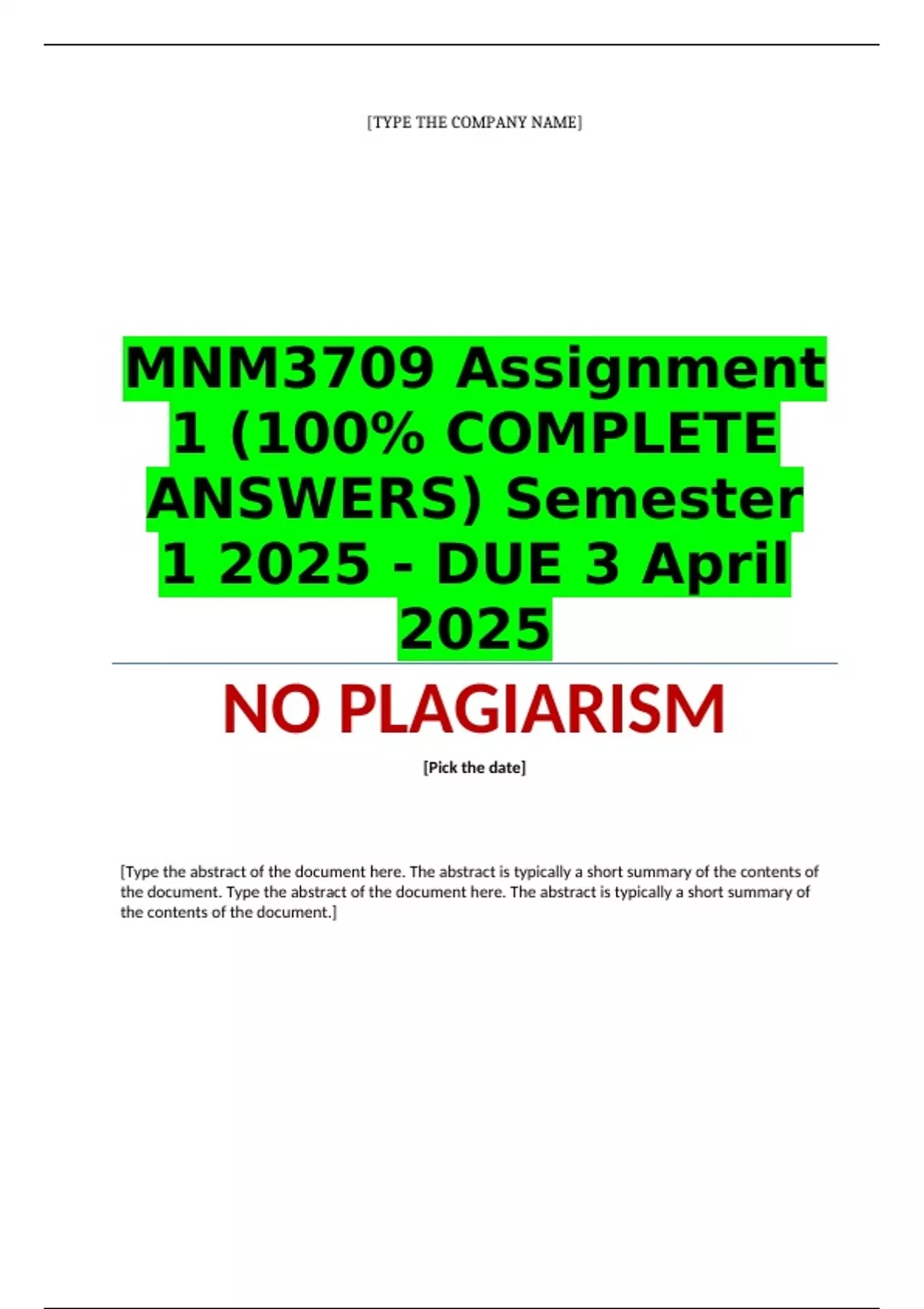 Strategic Marketing - MNM3709 Assignment 1 Semester 1 2025 - DUE 3 April 2025 ;100 % TRUSTED workings, Expert Solved, Explanations and Solutions.