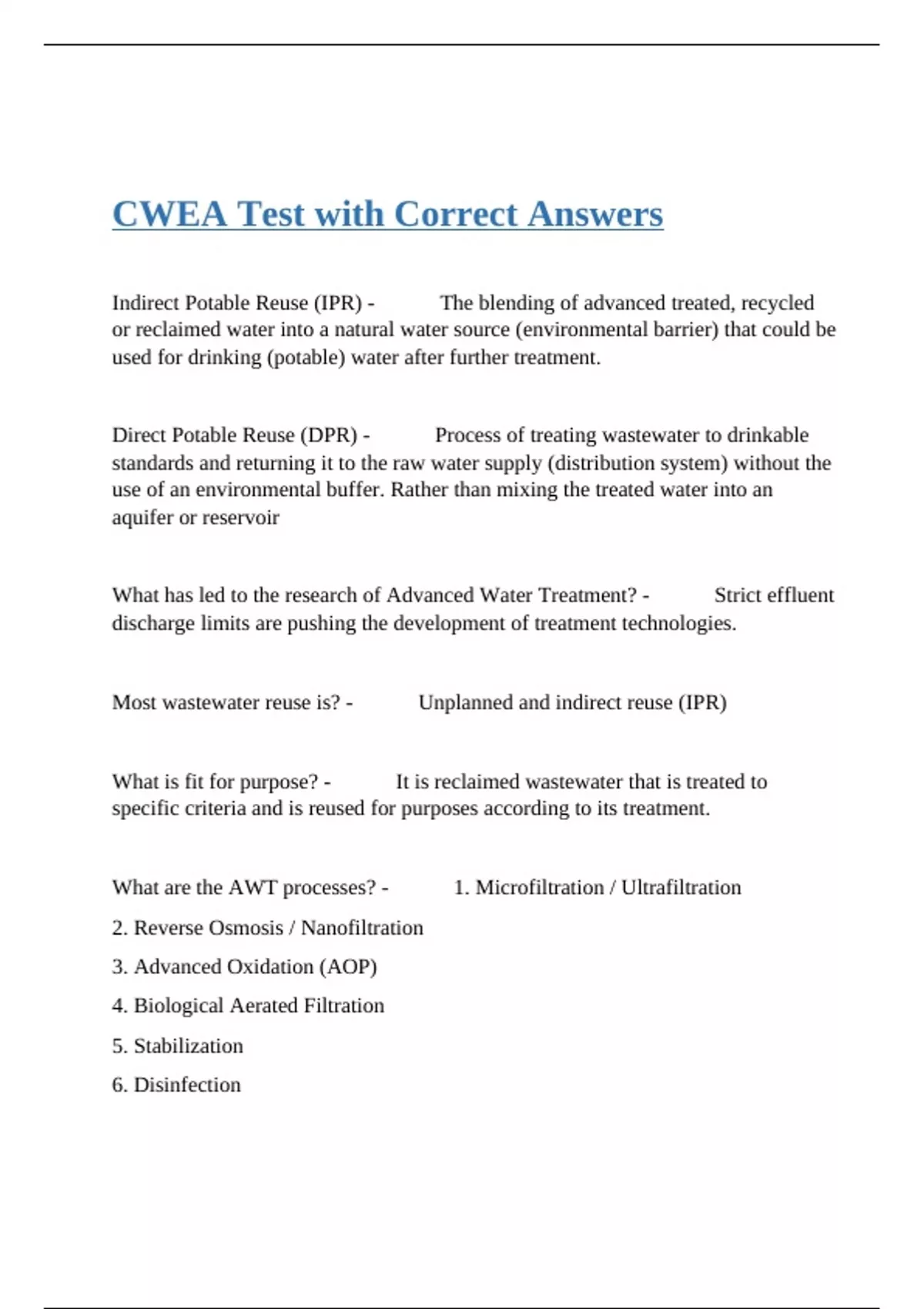 Direct Potable Reuse (DPR) - ✅✅ Process of treating wastewater to drinkable